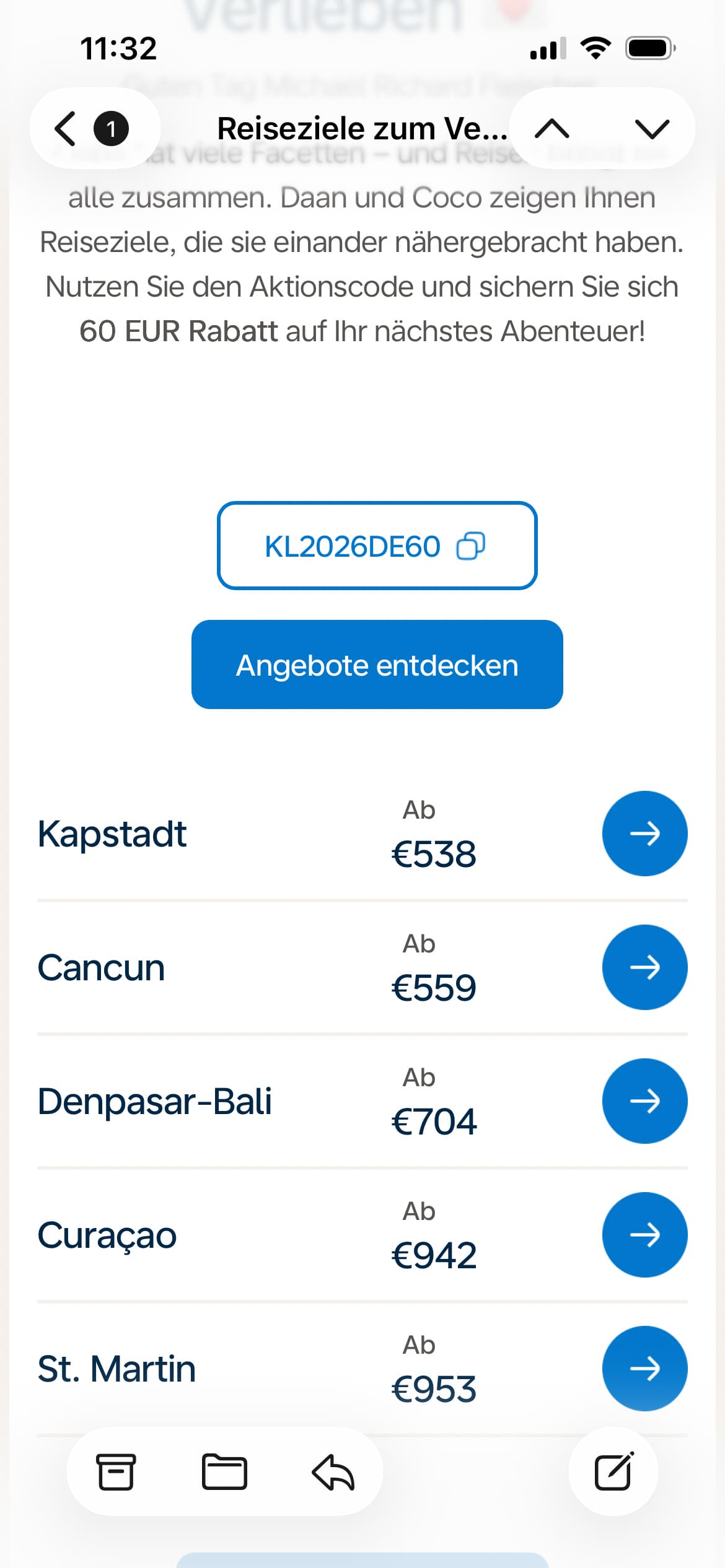Heute habe ich beispielsweise eine Email von Lot bekommen, dass es mit dem Code „LOVE20“ 20% Rabatt auf den Flugpreis gibt.