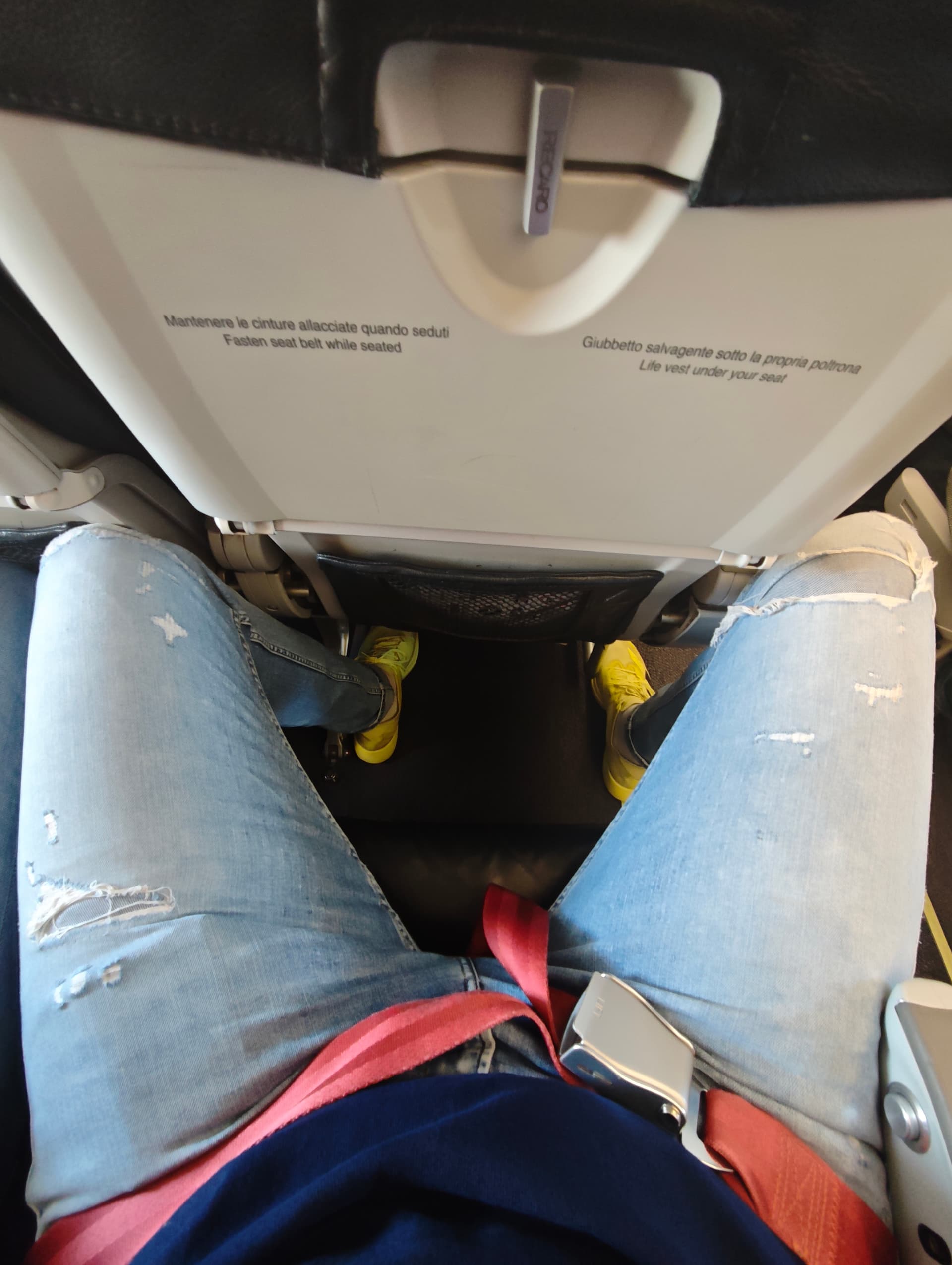 Schon das hinsetzen war sehr eng und bei meinen 1.80 war das gelinde gesagt ein Scheiß Flug.