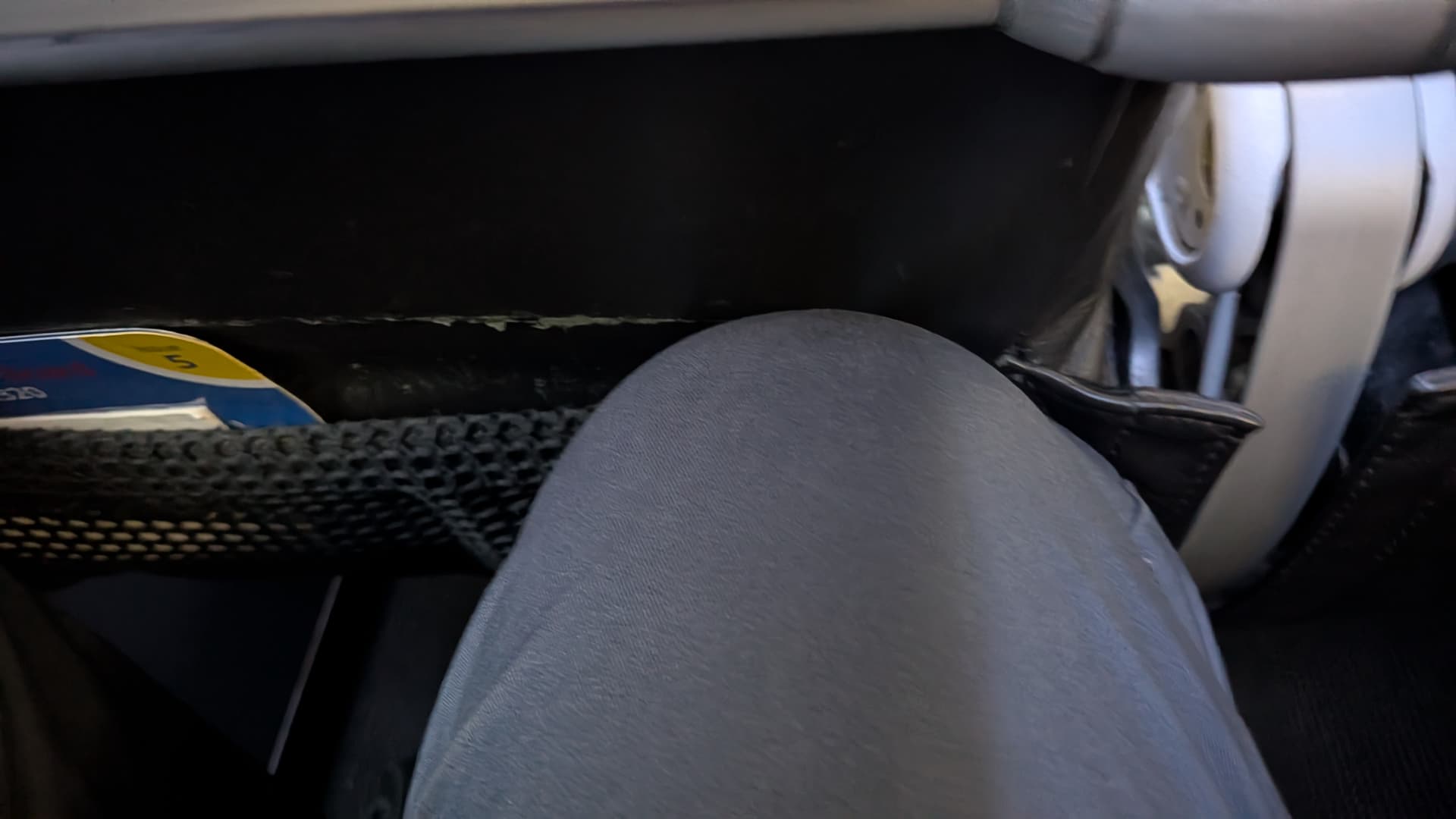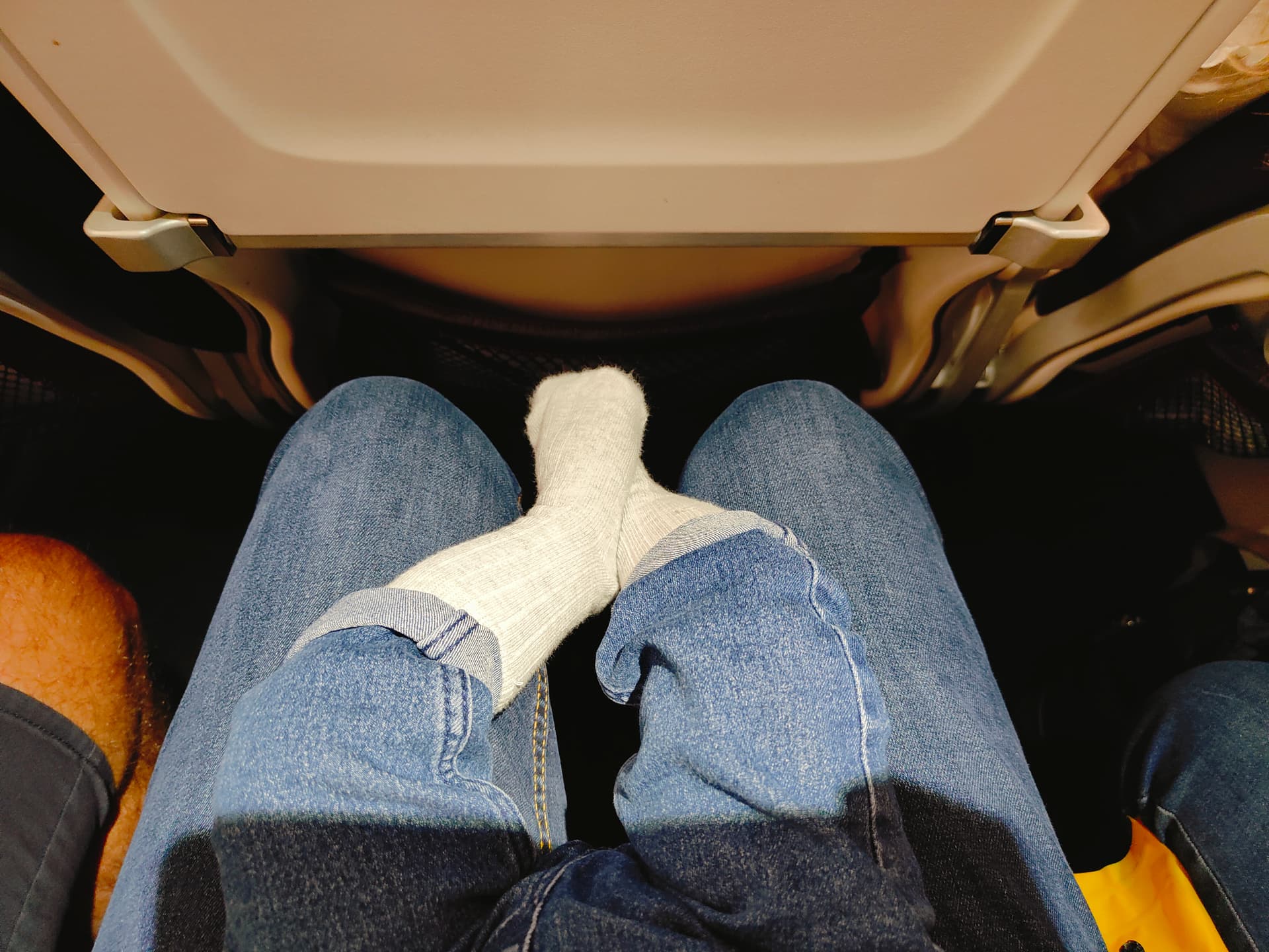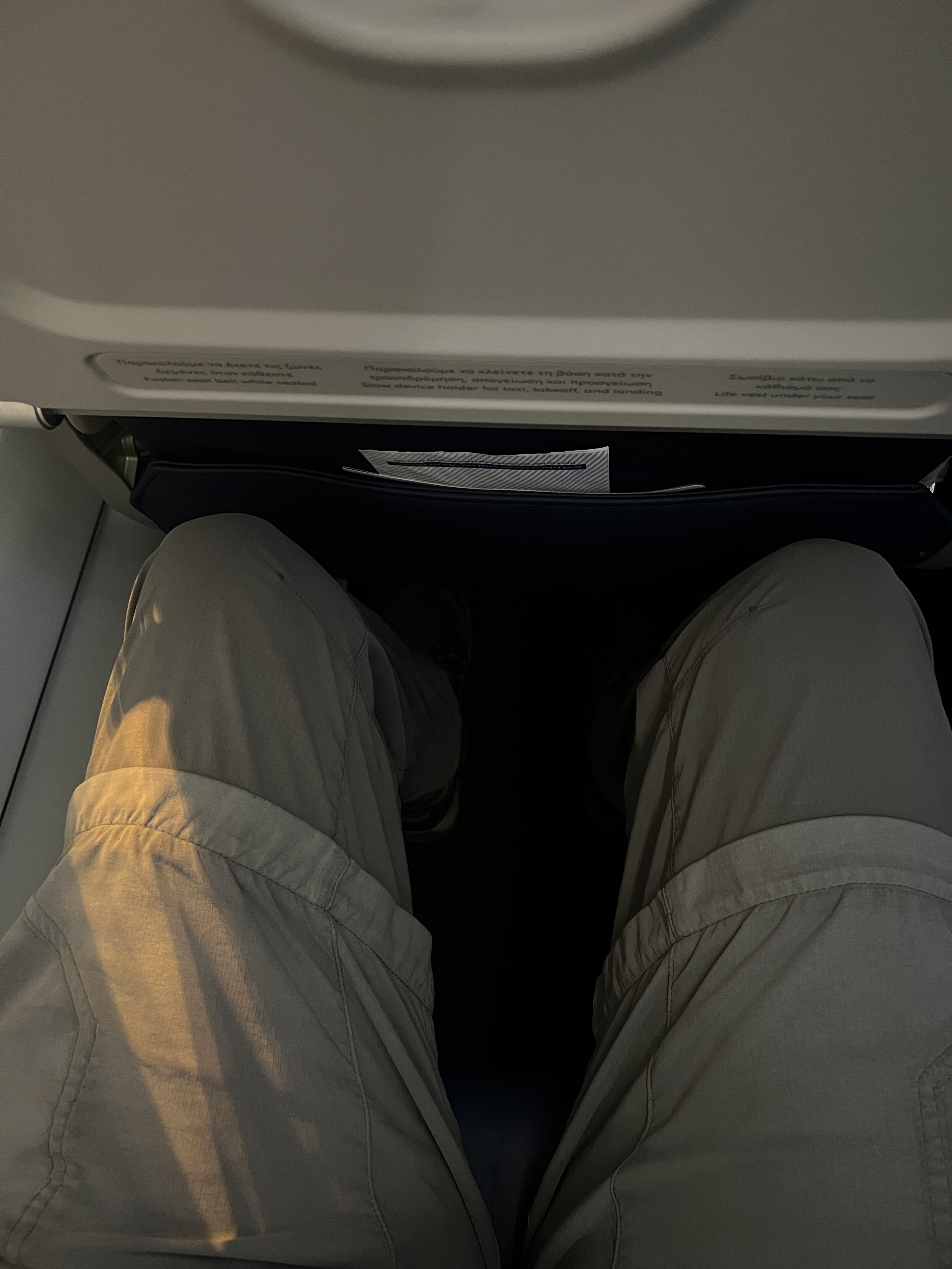 Sitzabstand geringer als bei RyanAir ( bin 192 ) …der kleinste in der Gruppe bei uns ( 174cm ) konnte gerade so die Beine gerade machen.