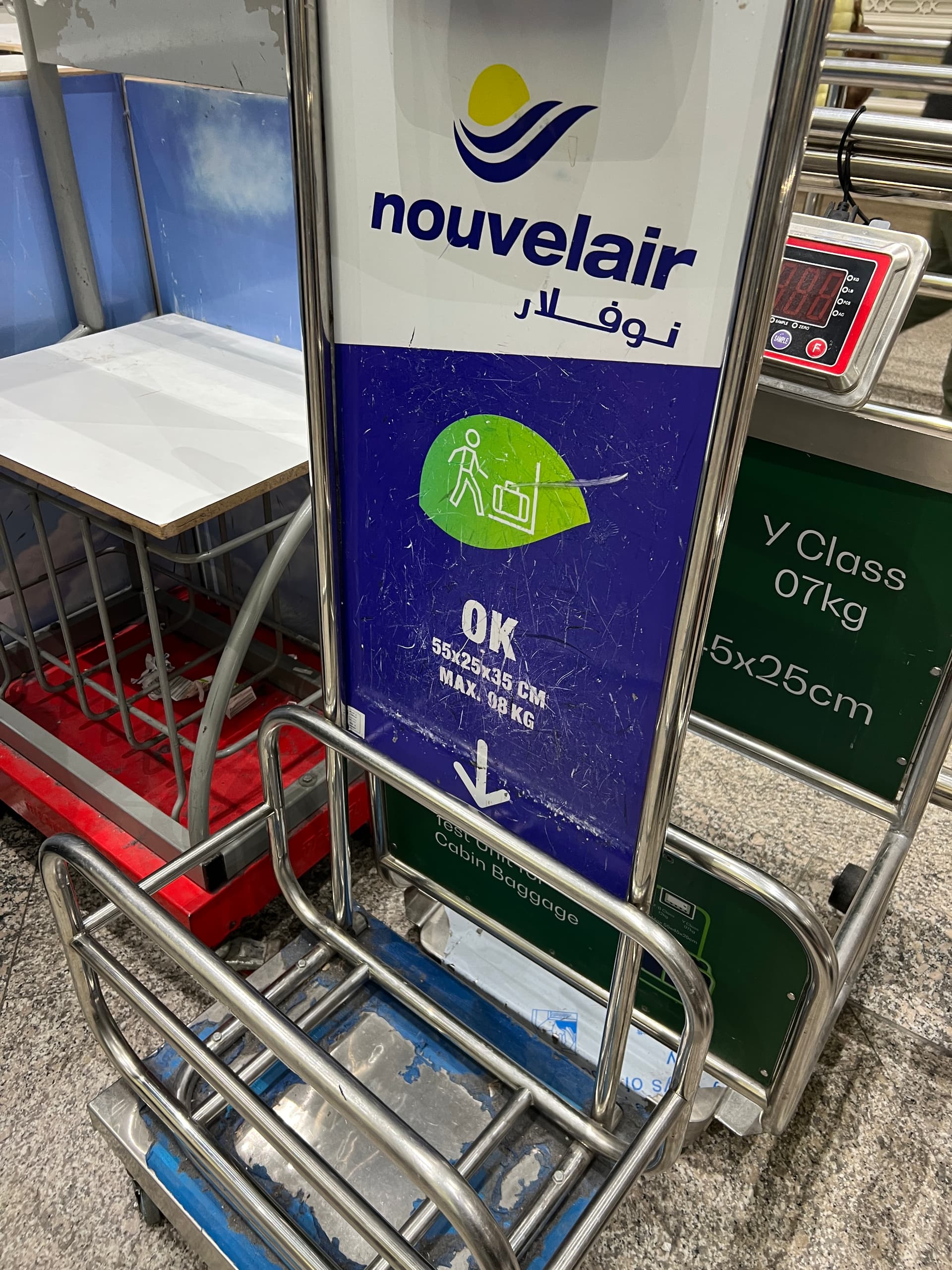 Achtung: beim Eingang zur Security steht eine nette Dame die nochmals das Gepäck in ein Gitter steckt um die Maße HxBxT zu prüfen (analog Rynair)