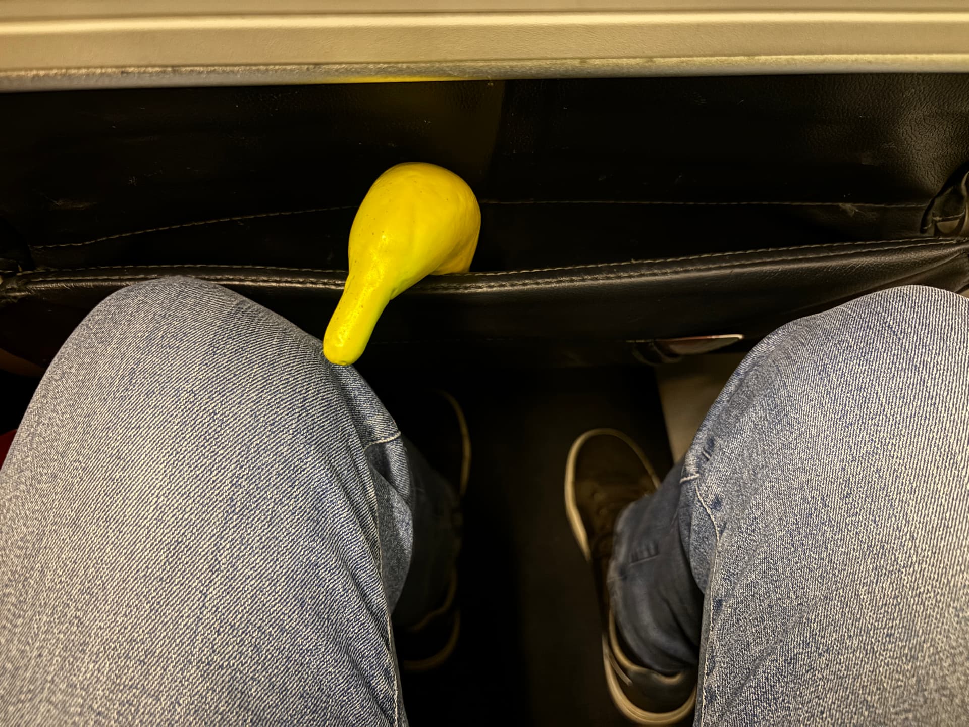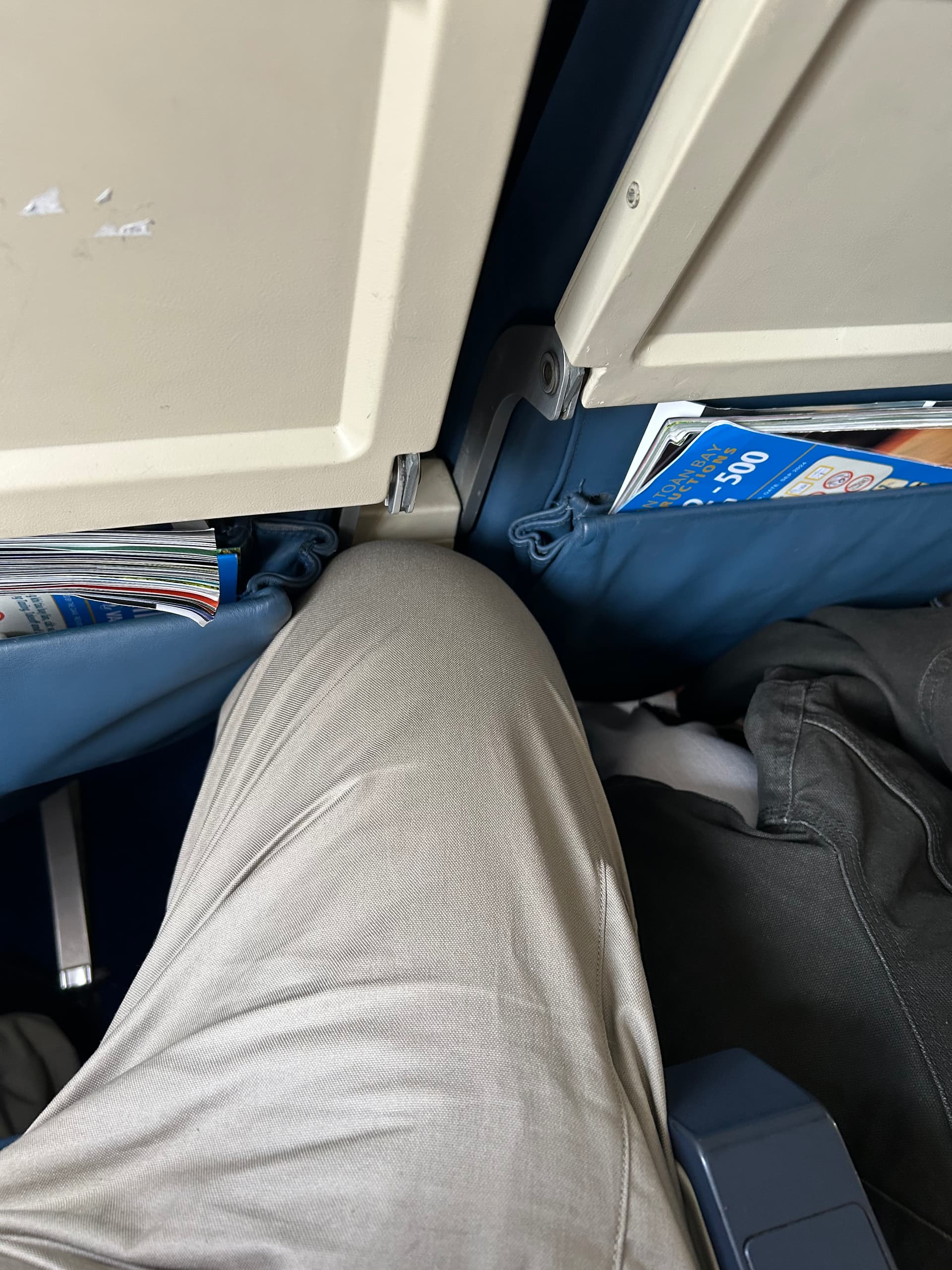 Nur durch breitbeiniges Sitzen konnte ich da Platz nehmen. Leider war der Check-In bereits zu, sonst hätte ich noch meine Kniescheiben aufgegeben…