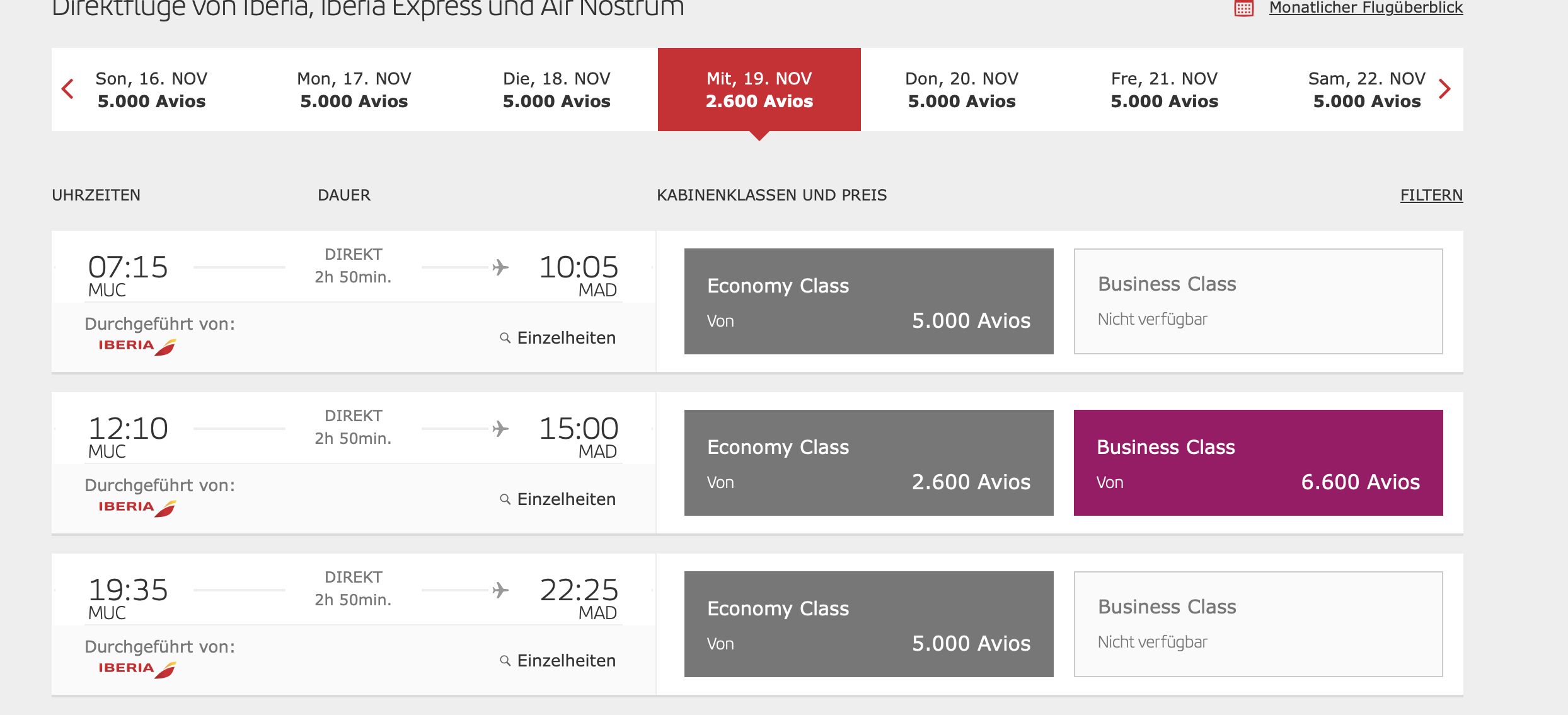 Iberia in C MUC-MAD-EZE für 67k Avios + €226