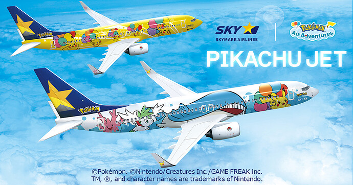 Eine interessante Option wäre auch der Pikachu Jet von Skymark, allerdings ist es aktuell schwierig, die beiden Jets verlässlich einzubuchen.![]()