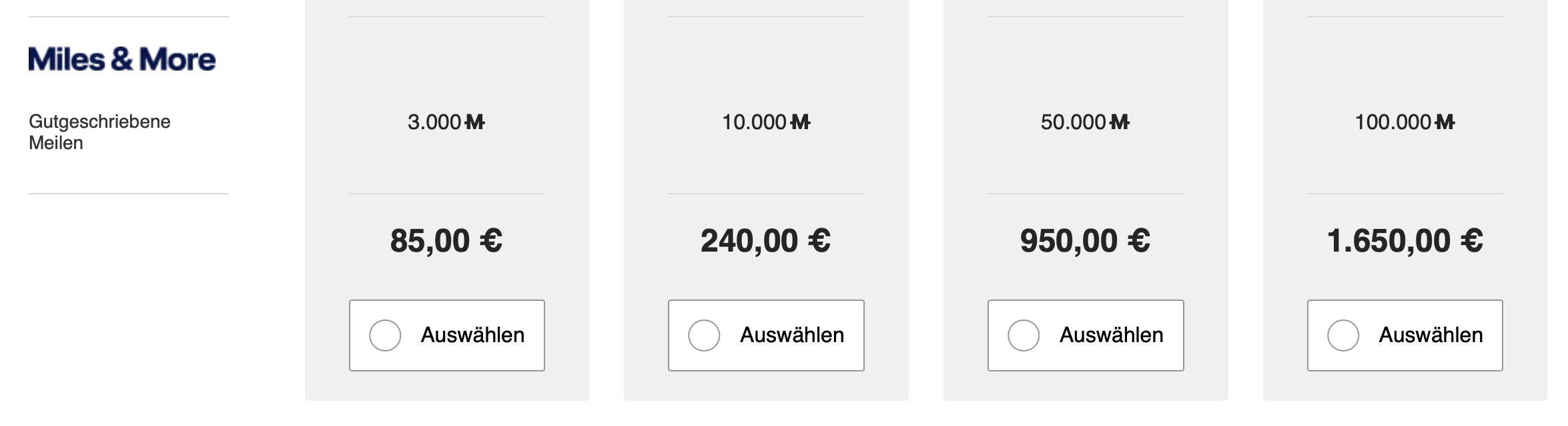 Letztes Jahr gab es Meilen im Bundle: 100 k + 50 k für € 1750.