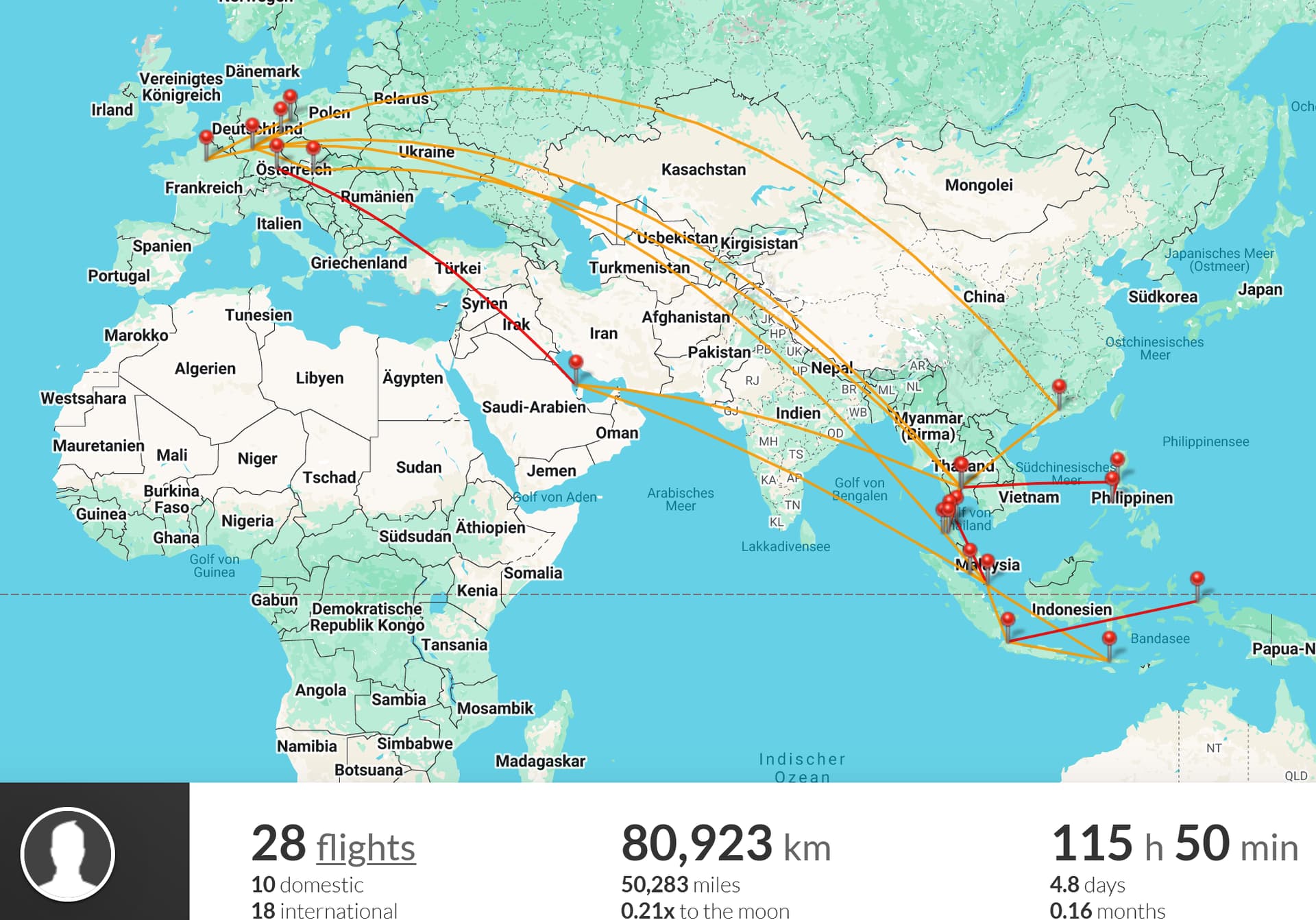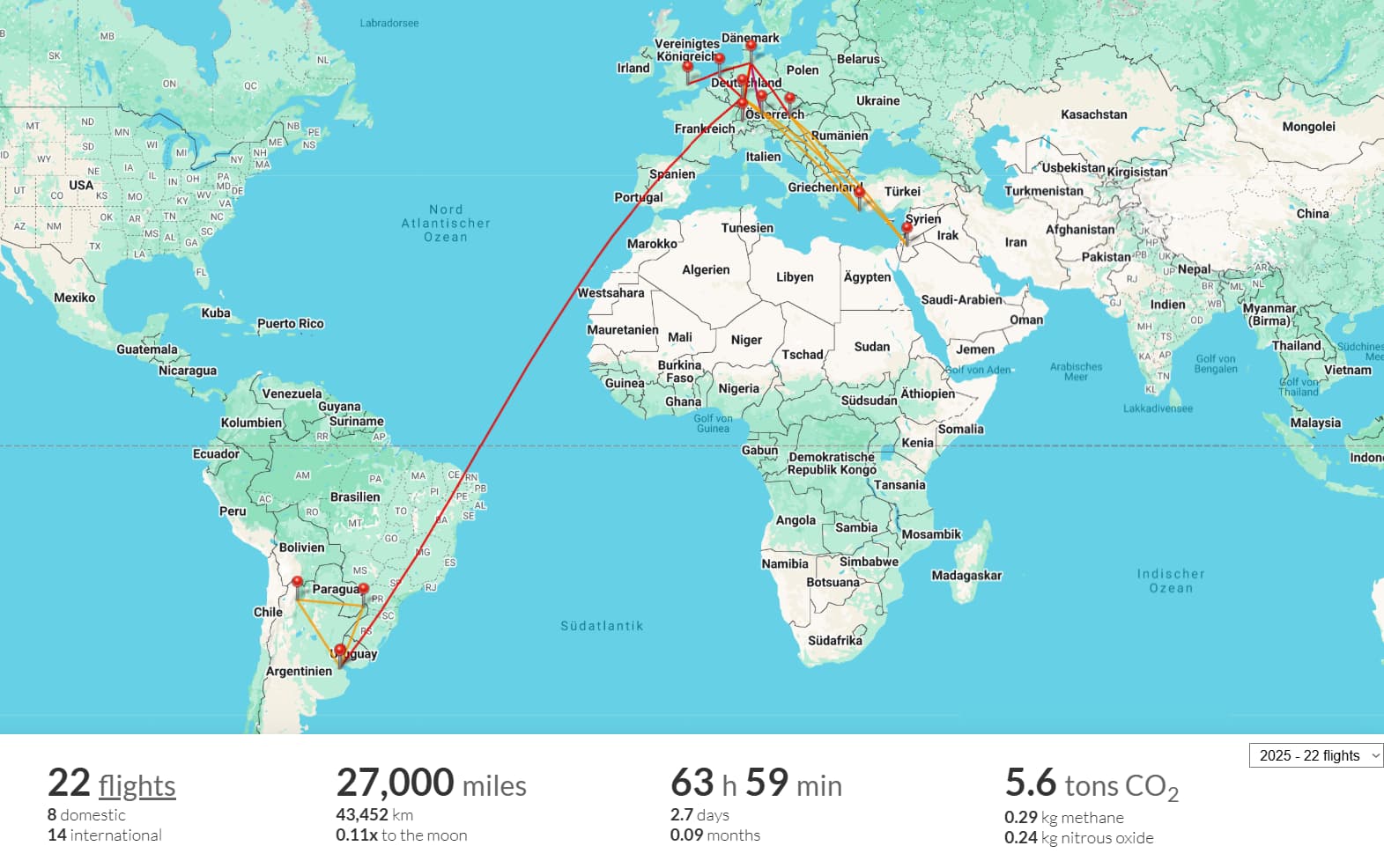 Einiges unterwegs gewesen, Mischung aus Reisen, Geschäftsreise und Heimat. Dank *G via TK auch in Eco innereuropäisch angenehm. Im Vergleich zu dem, was einige andere vorzuweisen haben vermutlich trotzdem putzig.
