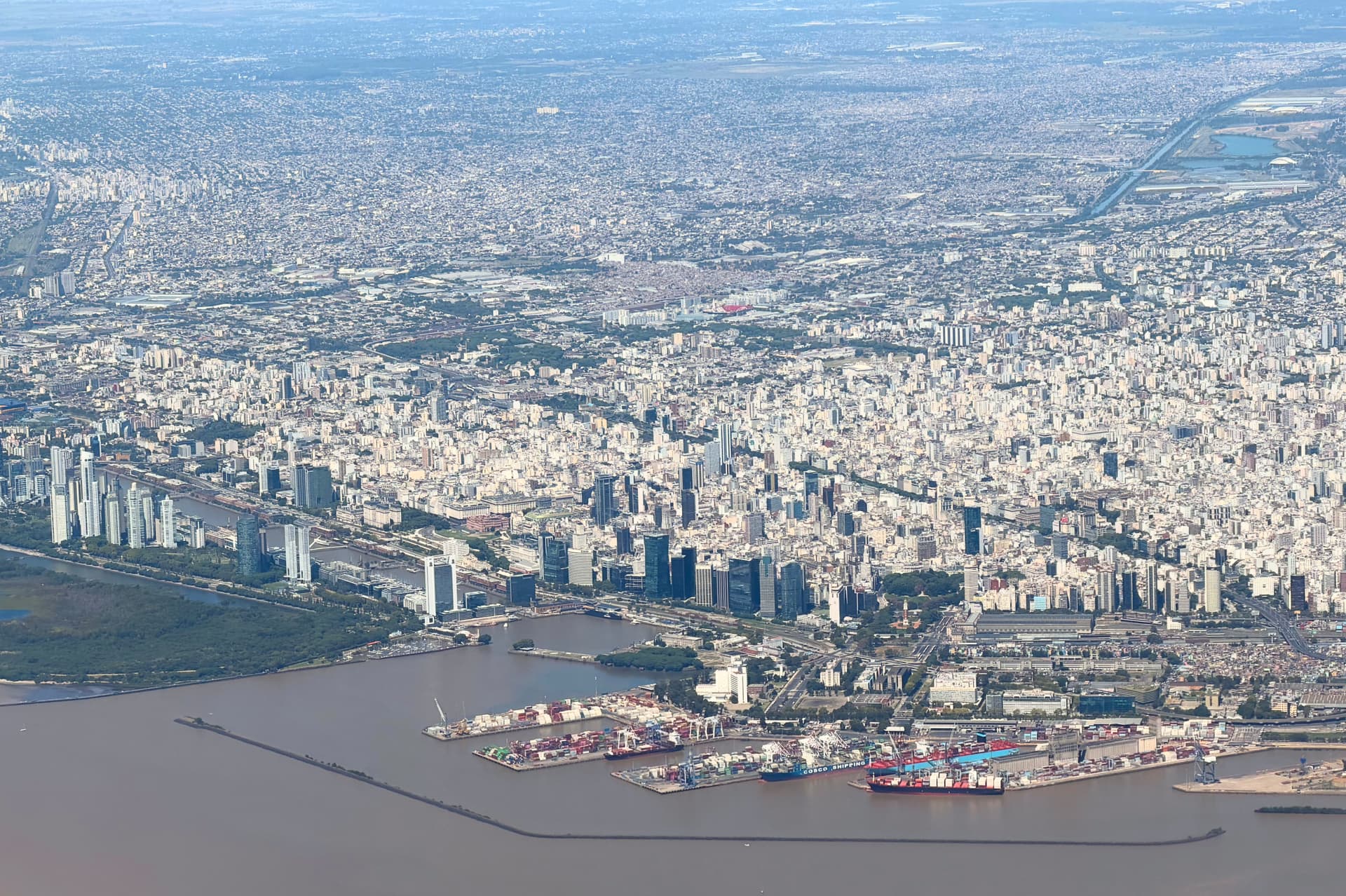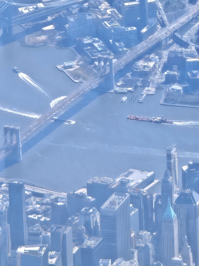 Überflug und man sieht Rechts der Themse Millwall Outer Dock. Die Gebäude sind Canary Wharf. Links der Themse Greenland Docks.