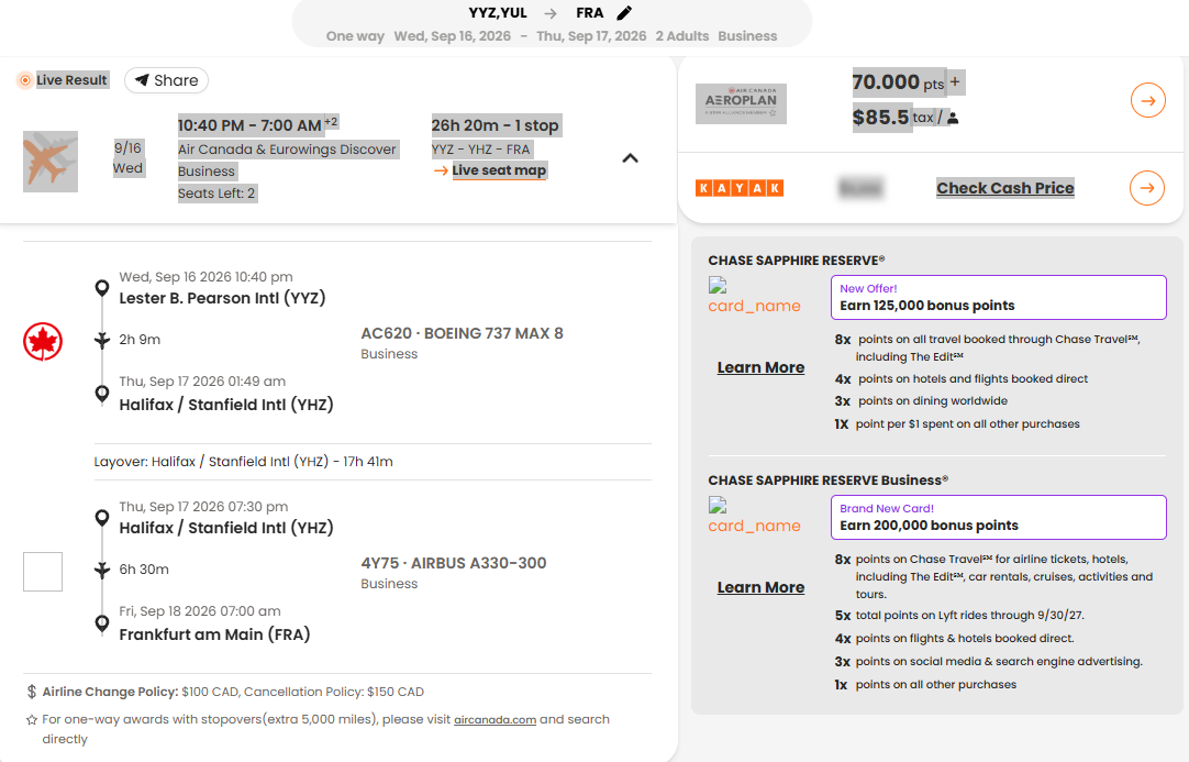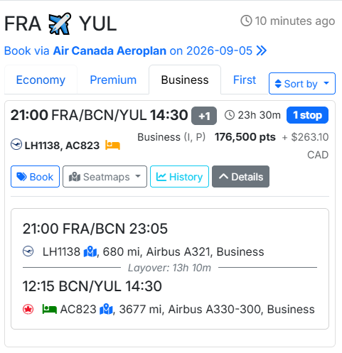 Das habe ich auch gesehen. Aber leider kann man ja die MR nicht auf Aeroplan übertragen. Würde über Marriot Bonvoy gehen aber mit extreme Punkte verlust durch die Umrechnung bei der Übertragung.