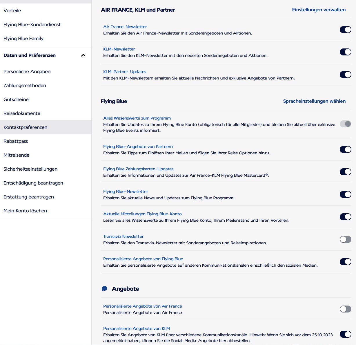 Habe auch mal geschaut und ich habe in der KLM App nur einen (1) Haken gefunden für Newsletter