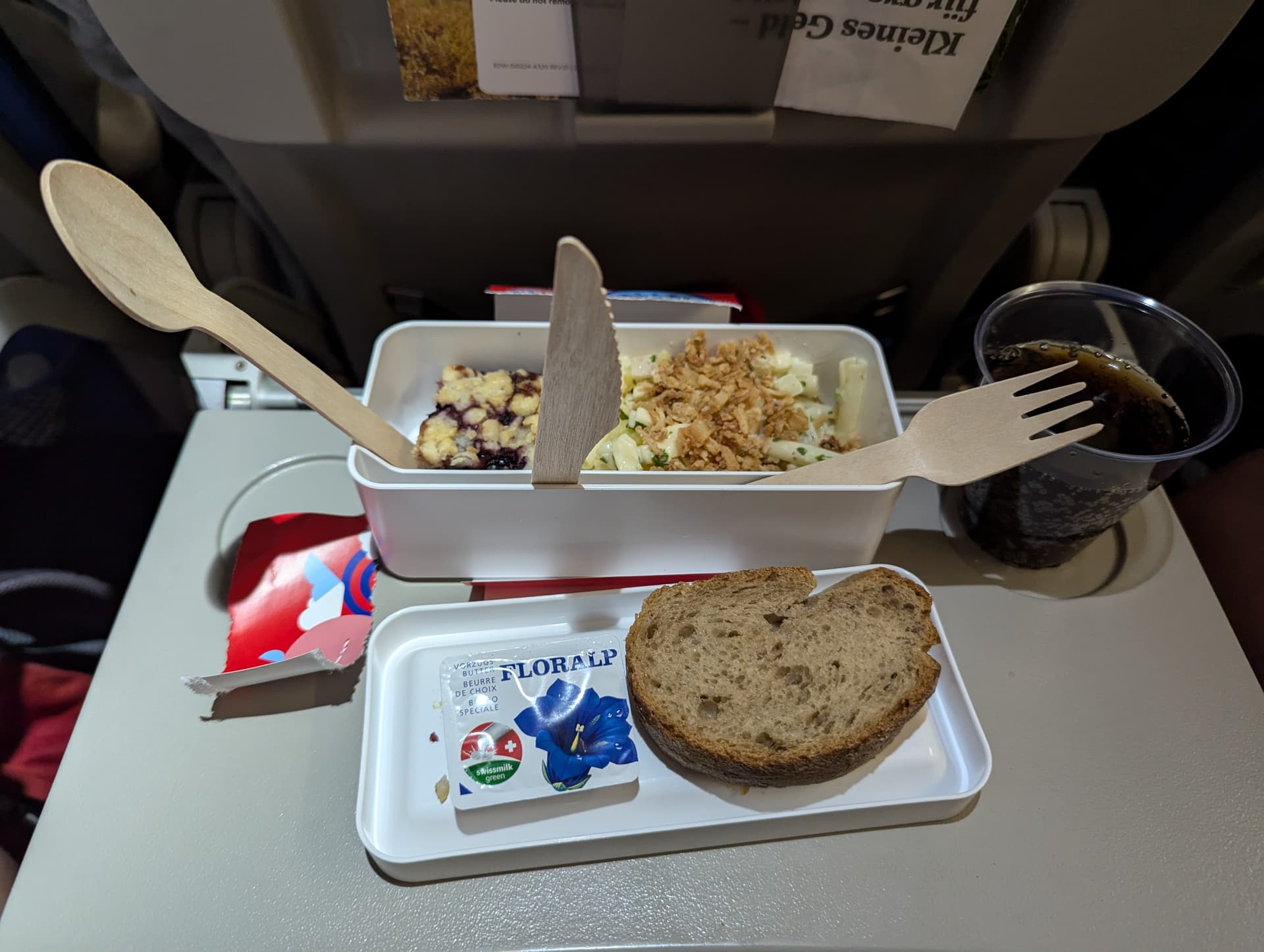 Auf dem Hinflug das gleiche Bild. Salat war Couscous, sauer, kaum genießbar.