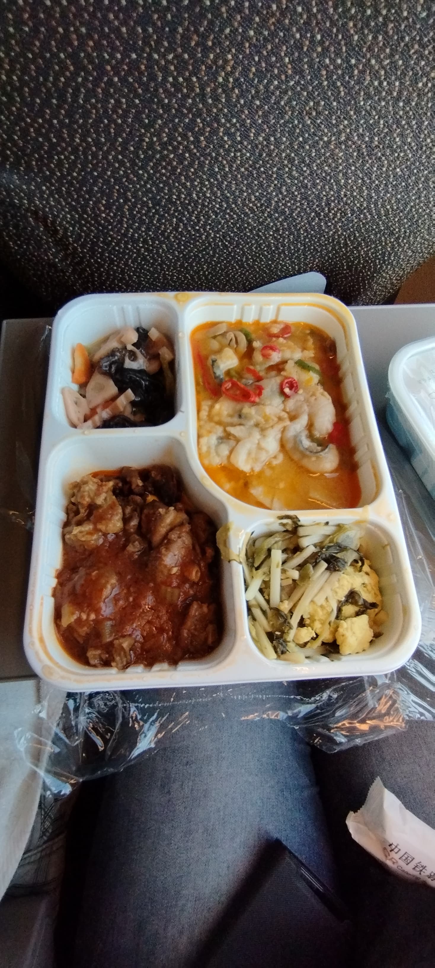 Alle halbe Stunde geht eine Bedienstete durch den Wagen und sammelt Abfälle ein. Werbevideos warnen vor Angriffen auf das Sicherheitspersonal, das wird mit Gefängnis bestraft.
