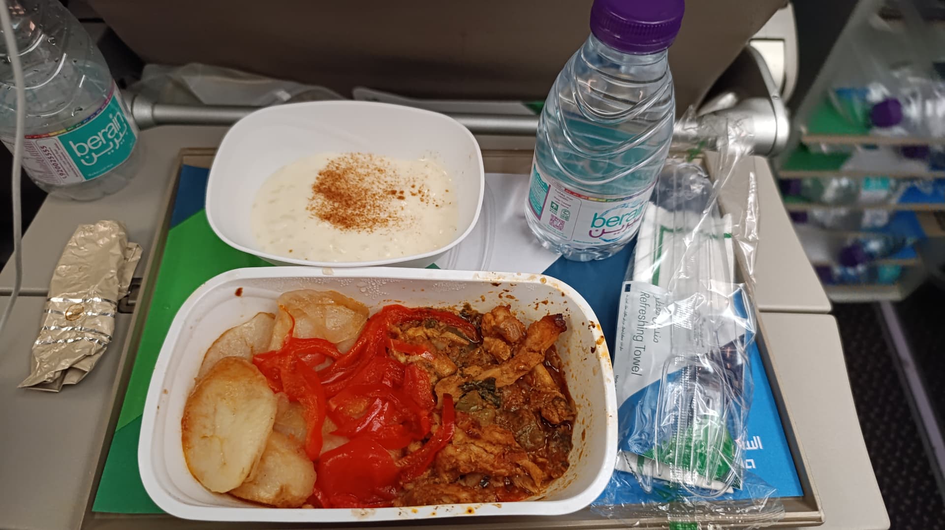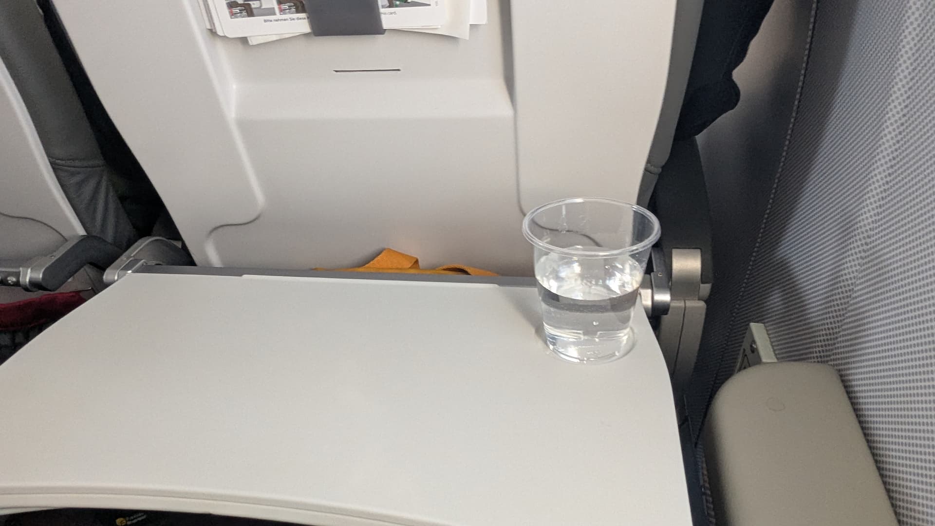 Nach dem Start gab es für alles auch ein Erfrischungstuch. Der Flug wurde auf dem kurzen Hüpfer komplett in Eco durchgeführt.