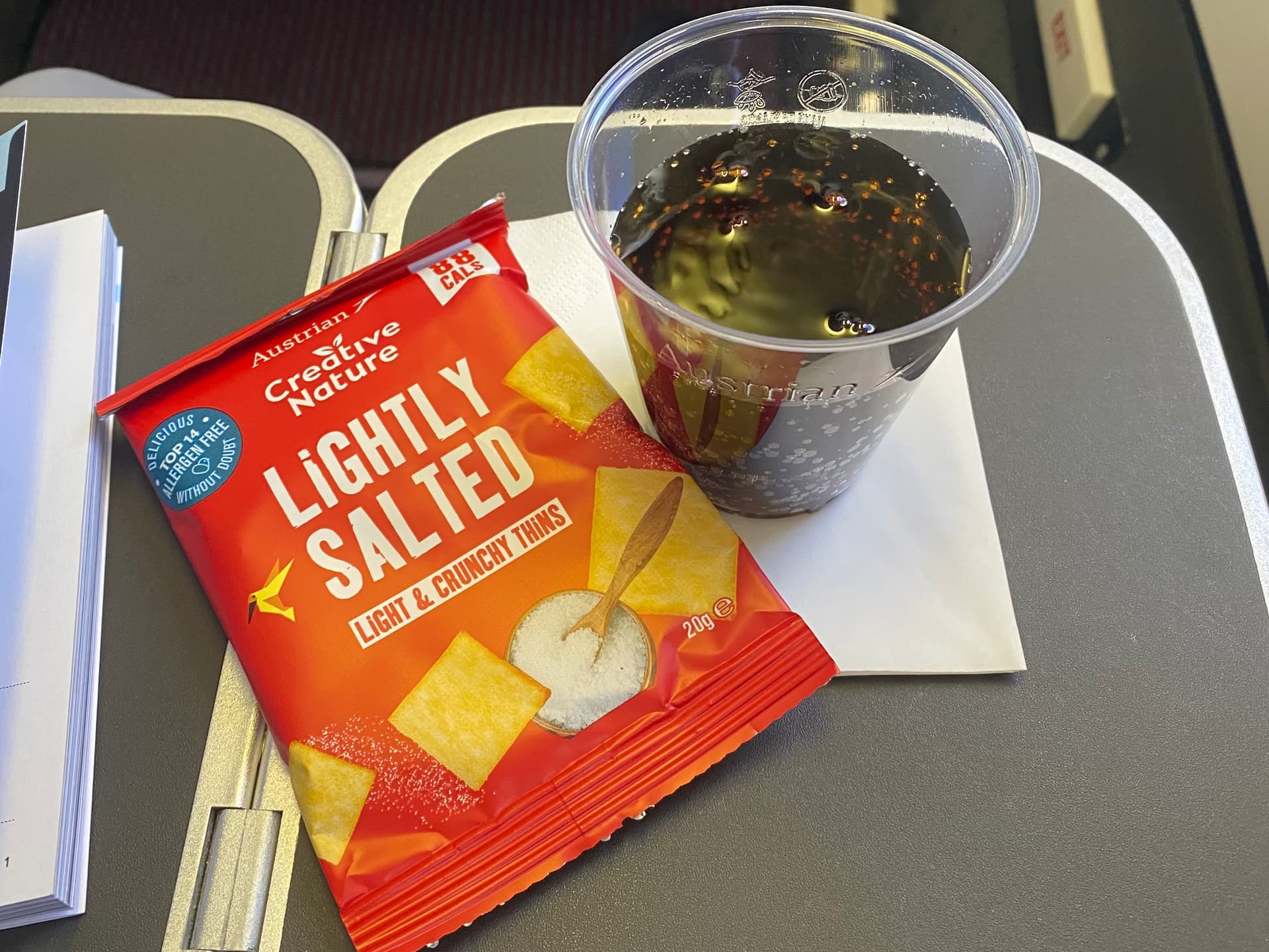 Vor der Landung gab es noch einen kleinen warmen Snack mit Getränkeservice, hab leider das Foto vergessen.
