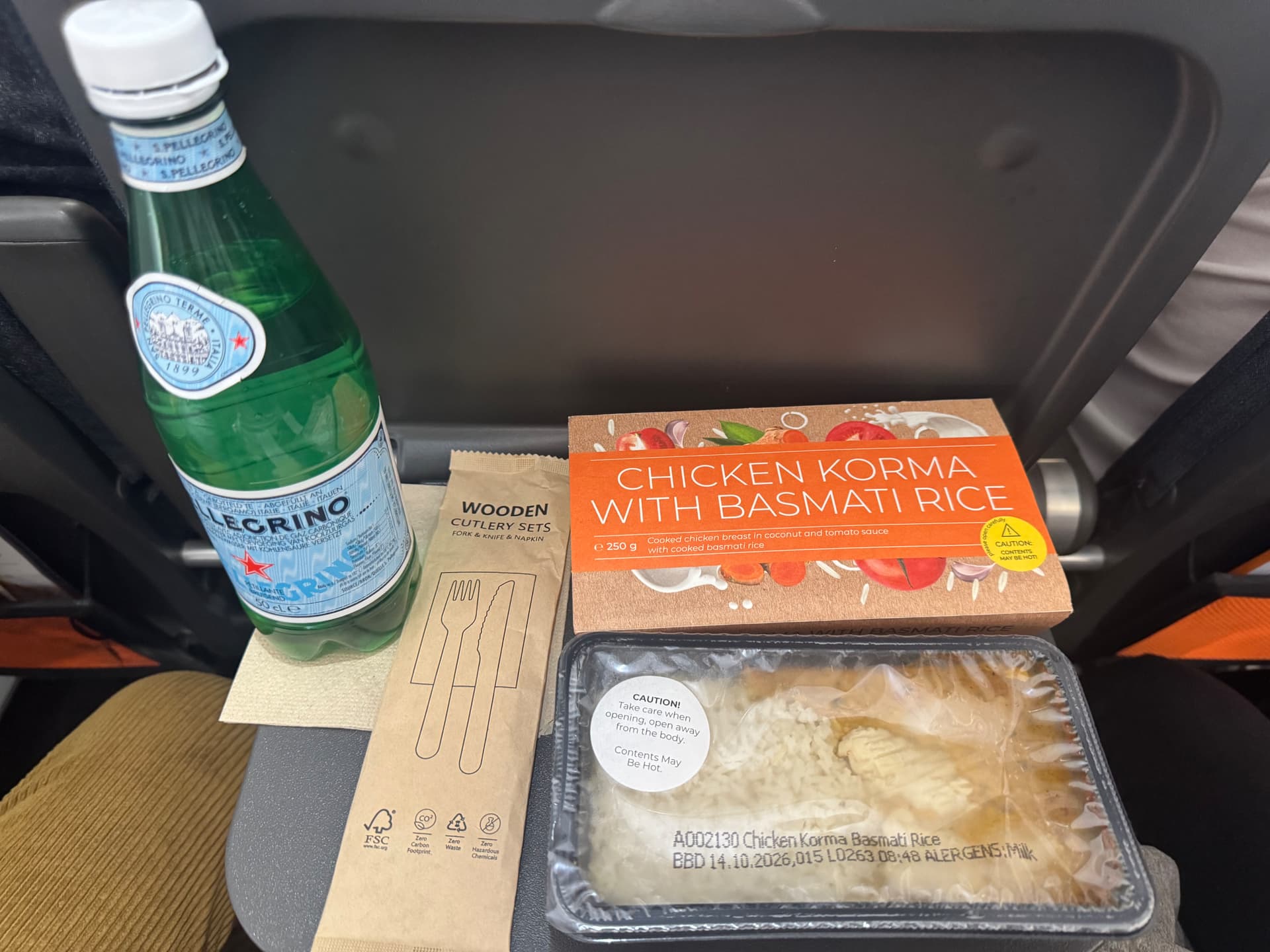 Chicken Korma (Anteil Chicken: 50 g max, viel Reis, Soße okay - made in Tschechei) und 500 ml Pelegrino: 10,50 EUR - preislich also in Ordnung und habe schon Schlimmeres verspeist