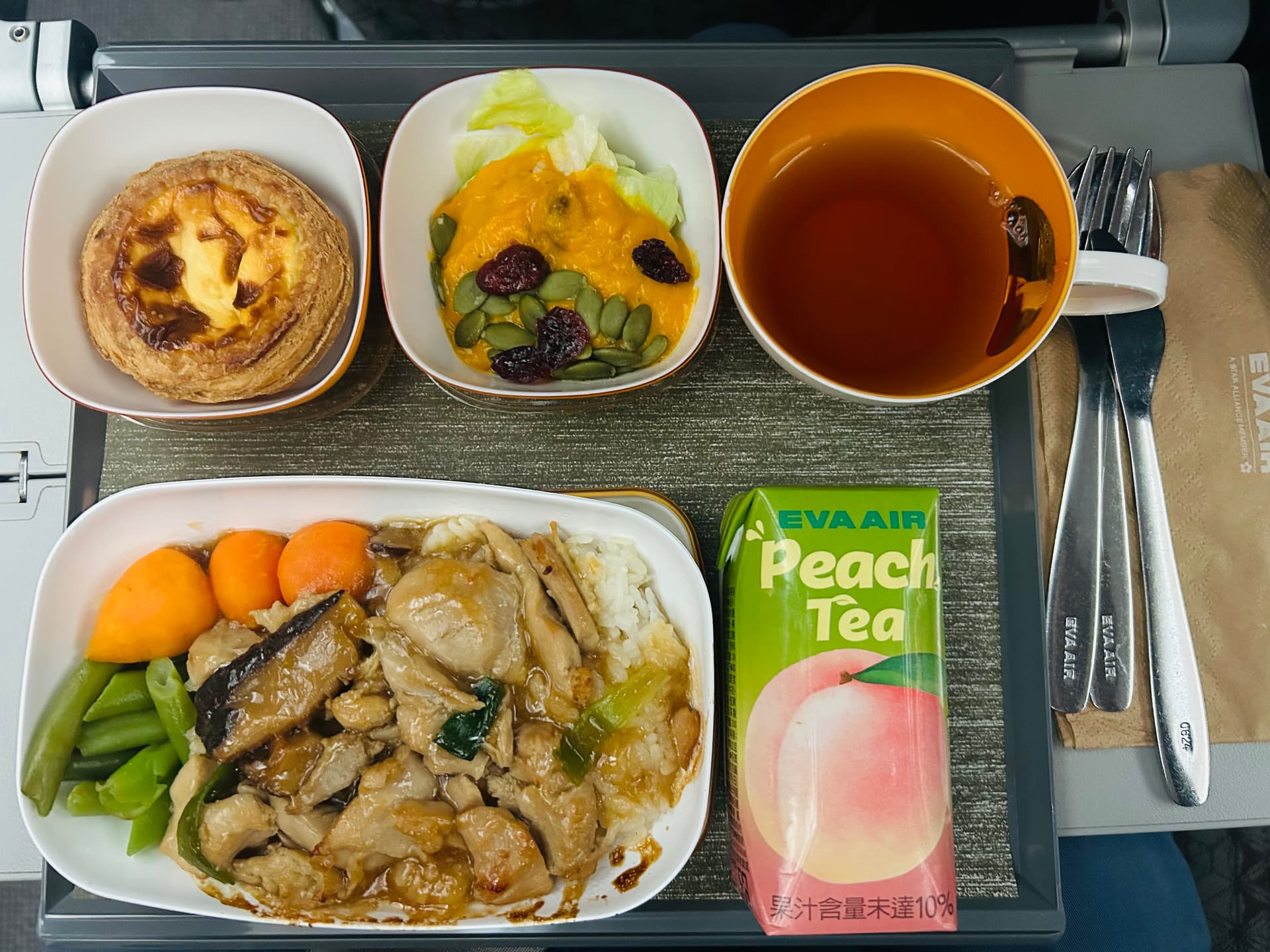 Uni Air ist jetzt nicht Spezialist für Pastel de Nata (oder ich hab was verpasst,und die angesagteste neue Geschmacksrichtung ist “BONA Fugenkitt-Nasses Wespennest”..?), der Rest aber wirklich passabel !