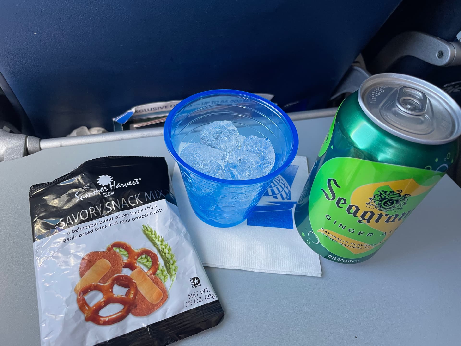 United Economy, RSW-EWR, 2.5h Flugzeit, Flugbegleiter maximal desinteressiert (während Boarding am Handy gehangen, demonstrativ Gewerkschafts Lanyard getragen). Diese blauen United Becher haben Kultstatus.