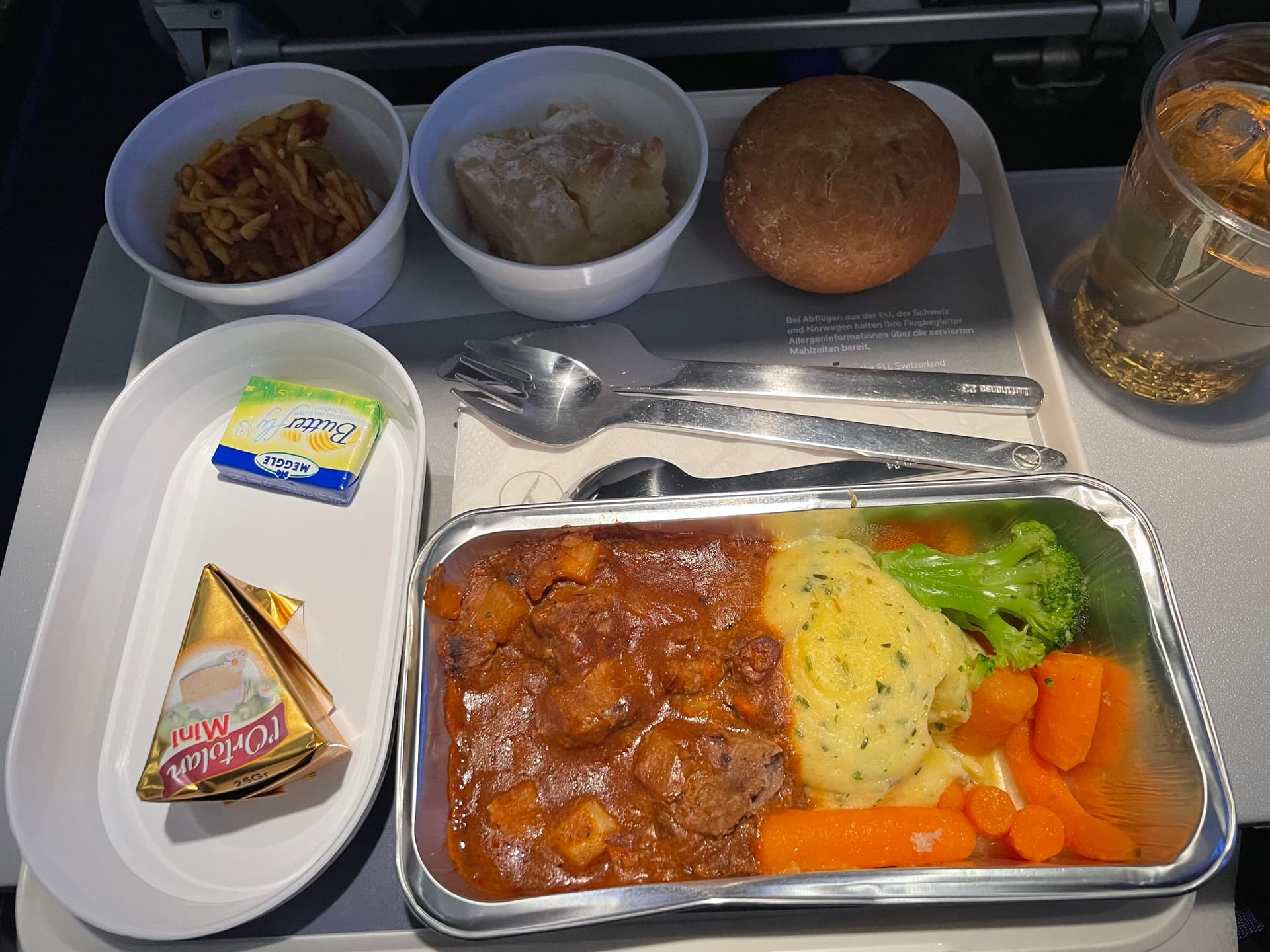 Wirklich sehr lecker, für einen 1,5 Stunden Flug mehr als man bei LH in C bekommt, könnte man sich mal eine Scheibe von abschneiden.