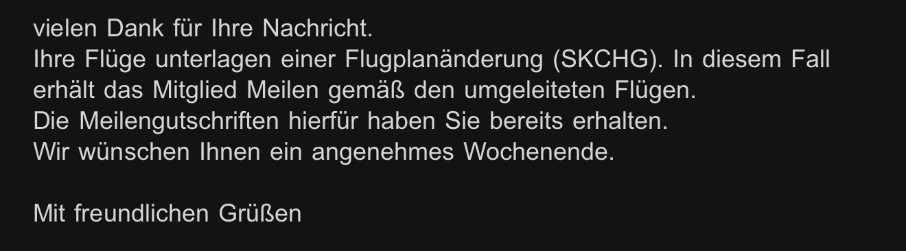 Und schlussendlich: worauf wurdest Du denn umgebucht? Wenn es innerhalb der Star Alliance passiert, wo Du letztlich auch Meilen bei MM erhalten kannst, sehe ich per se noch viel weniger Chancen auf ORC als Umbuchung auf Fremd-Allianz.