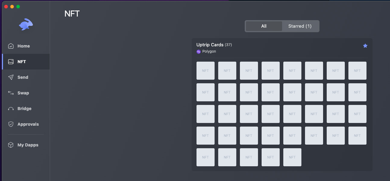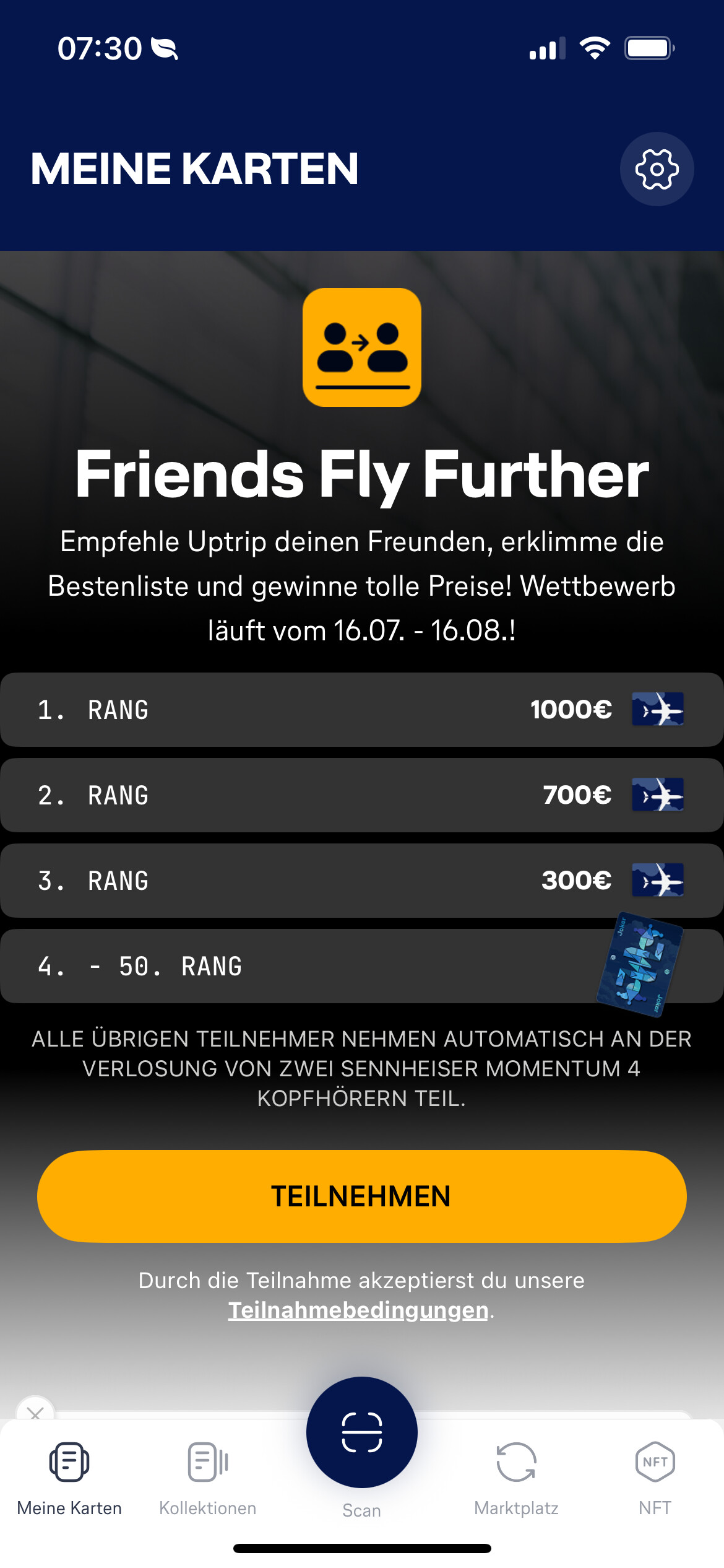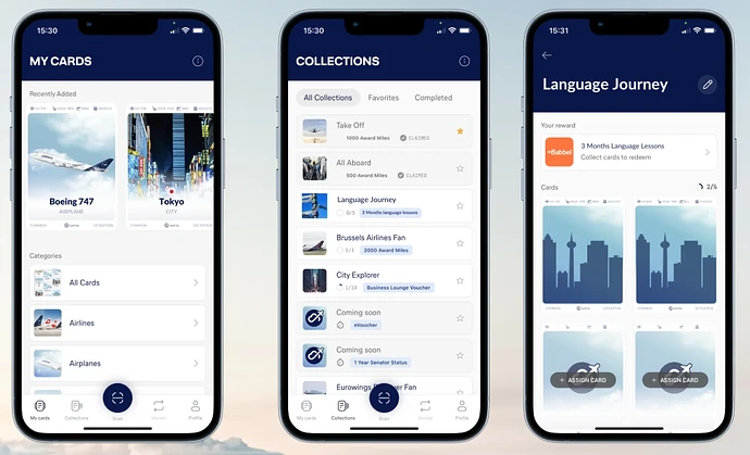 In der Uptrip App selbst, sehe ich die Karten allerdings nicht korrekt. Ich hätte erwartet, dass diese bei den NFT minted Karten mit Polygon Symbol auftauchen.