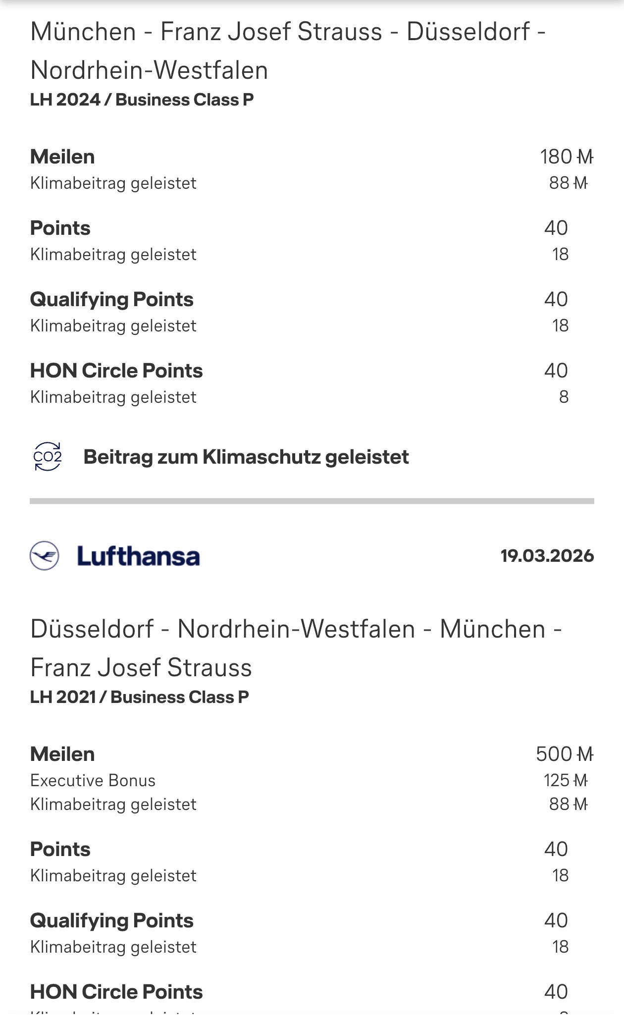 Es war eine einheitliche Buchung für Hin - und Rückflug. Lediglich den CO2 Ausgleich habe ich später vorgenommen. Ich habe mal bei MM angefragt, da ich es einfach nur nachvollziehen möchte. Falls ich eine Antwort bekommen sollte werde ich berichten.
