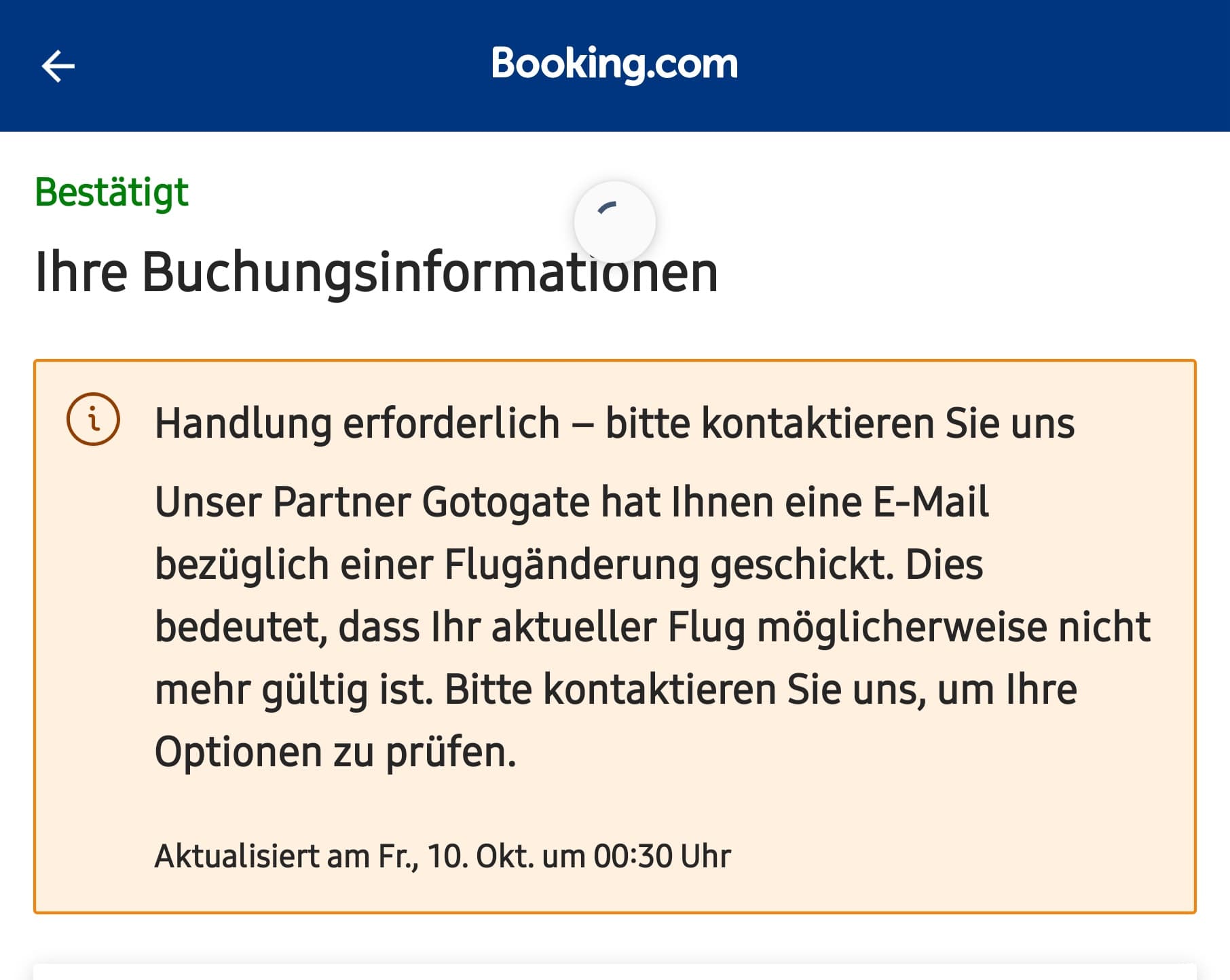 Ich habe seit gestern mehrere Male versucht, Booking.com über den Customer Service Chat zu erreichen, die angebliche Nachricht vom Hotel anhängend, mit der Bitte um Klärung und Info. Allerdings von Booking.com immer nur die Nachricht erhalten, es würde innerhalb 24 Std. Rückmeldung erfolgen. Jetzt sind 20 Std. um und keine Info.