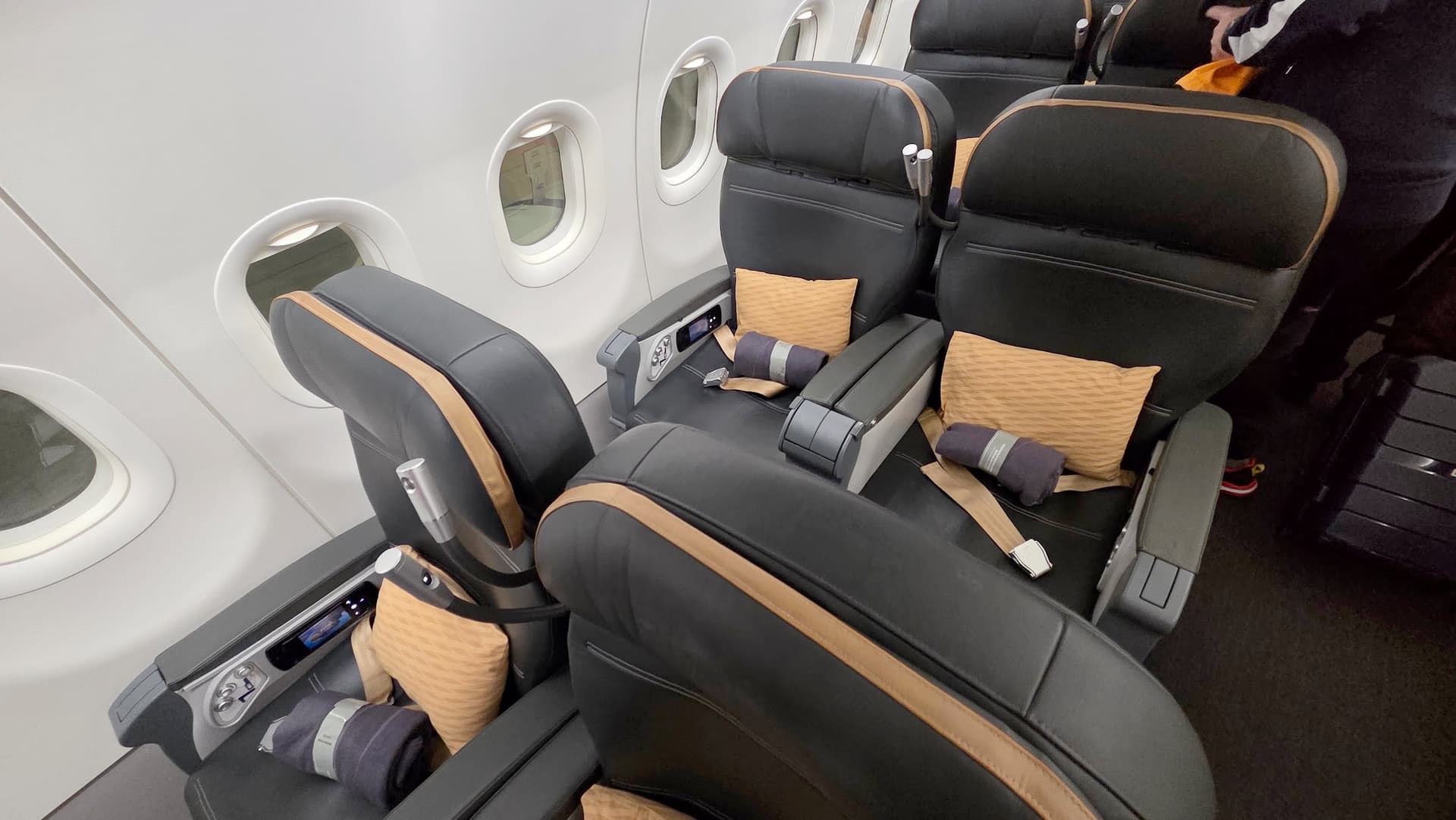 Nach dem Essen habe ich dann ca. 6 Stunden am Stück wunderbar geschlafen. Der Sitz ist zwar zum schlafen etwas schlechter als der alte, da er enger und kürzer ist, aber das hat mich offensichtlich nicht besonders gestört. Zum Frühstück habe ich mich für die Omelette-Variante entschieden, die ebenfalls super war:
