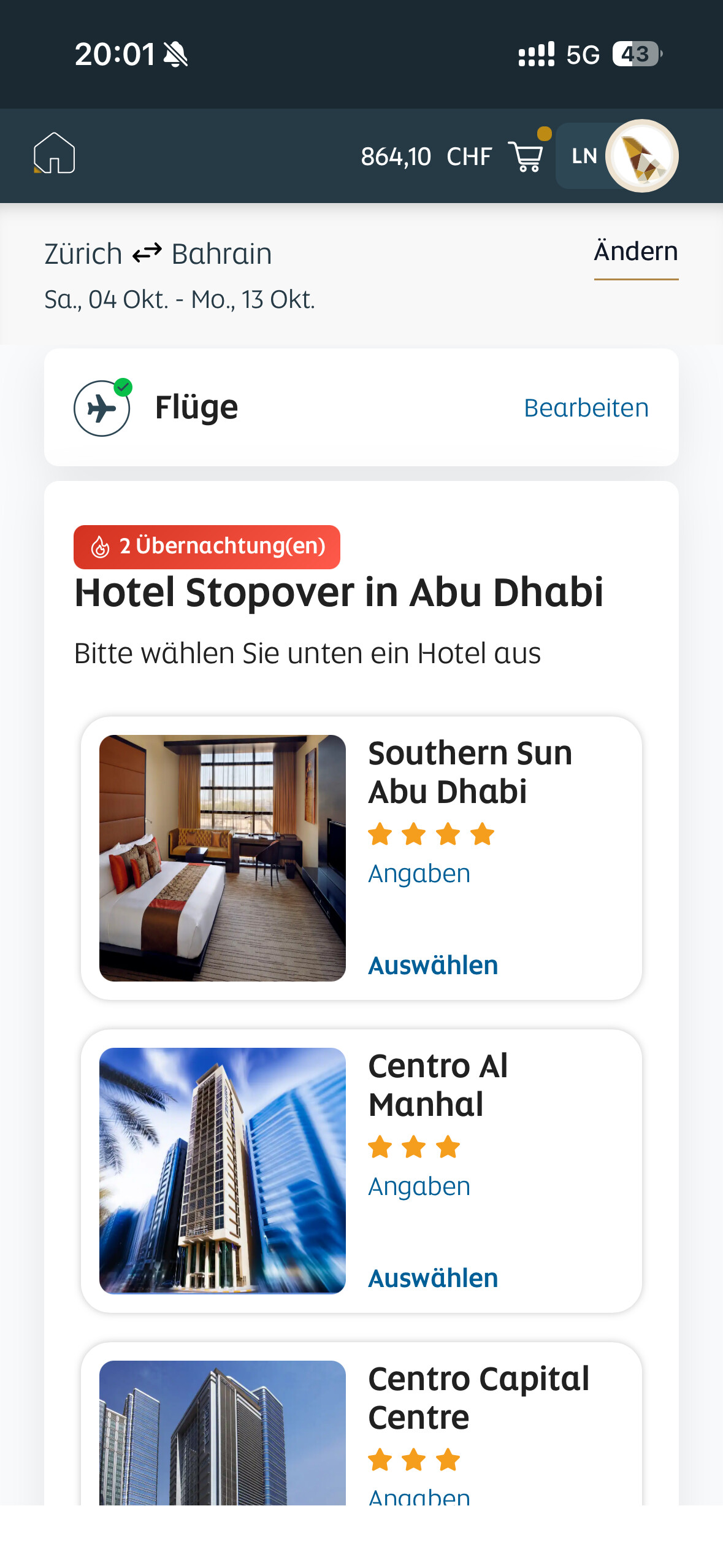 Dann konnte ich auch schon aus ca. 6 Hotels auswählen. Sind alles 4 oder 5* Hotels gewesen.