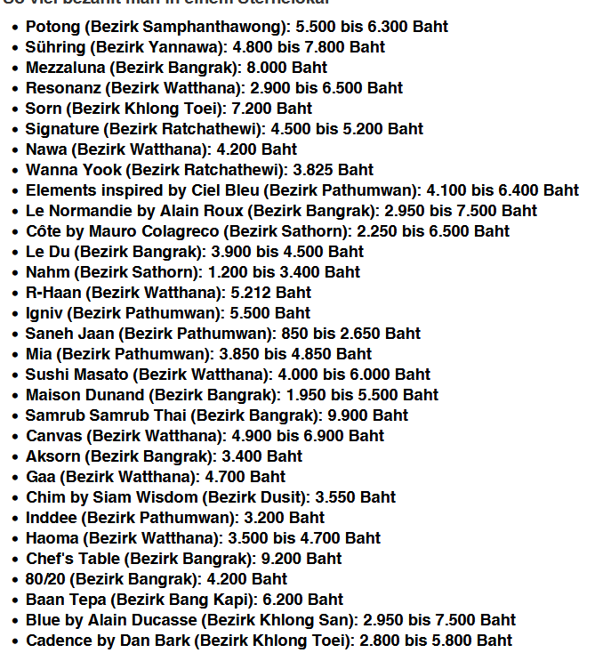 viele sind nervös: Michelin ändert offenbar seine Bewertungen, in Bkk 35 Sternerestaurants, sehr bekannt u.a. das Sührung neue dtsche Küche. einige hier geben Geld für Essen aus, hänge für die unten Liste von The Nation mit Preisen an. enjoy, guten Appetit