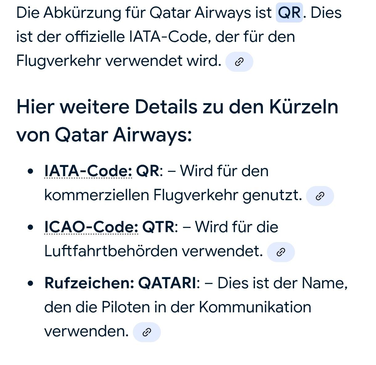 Bloß QA gibt es definitiv nicht im Zusammenhang mit Qatar Airways. ![]()