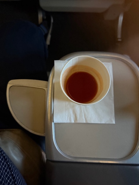 Für den Moment musste ich überlegen, ob Du Dir Salz und Pfeffer in den Kaffee machen wolltest, aber offensichtlich handelt es sich hier um ein anderes, für den Flugbetrieb typisches, rötliches Kaltgetränk ![]()