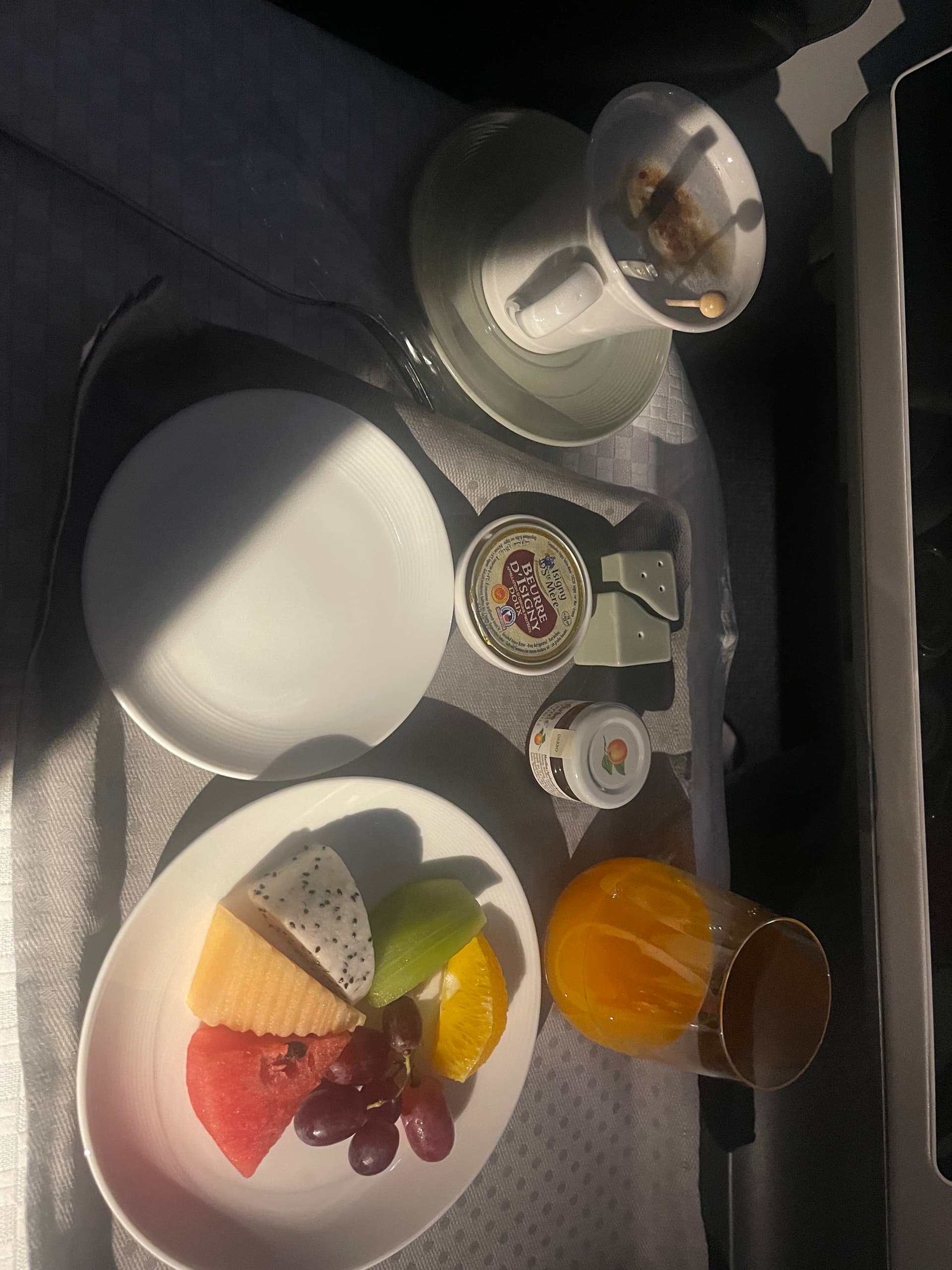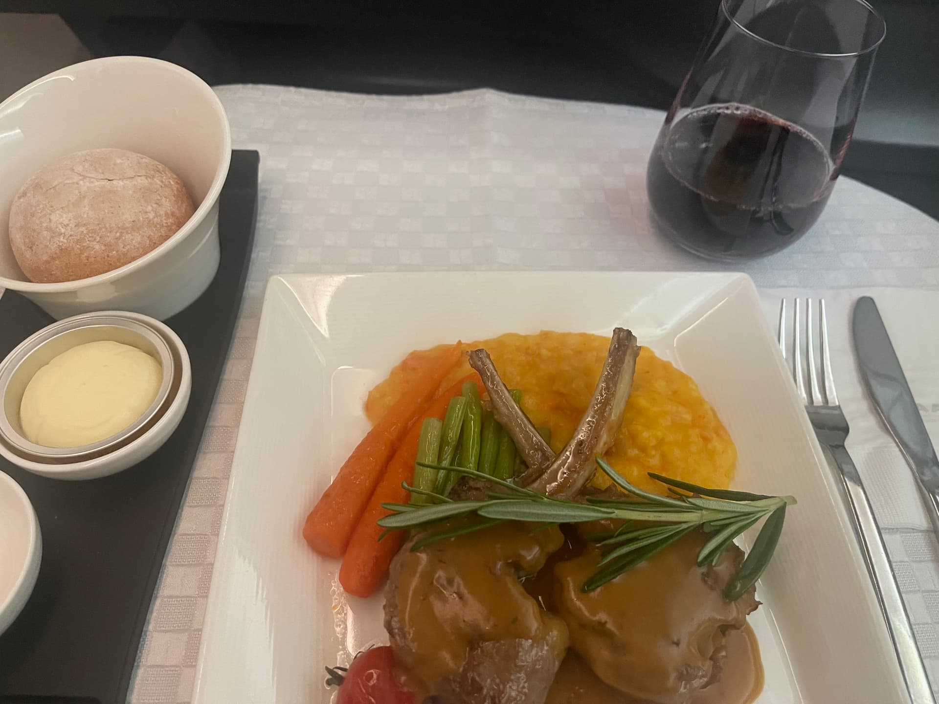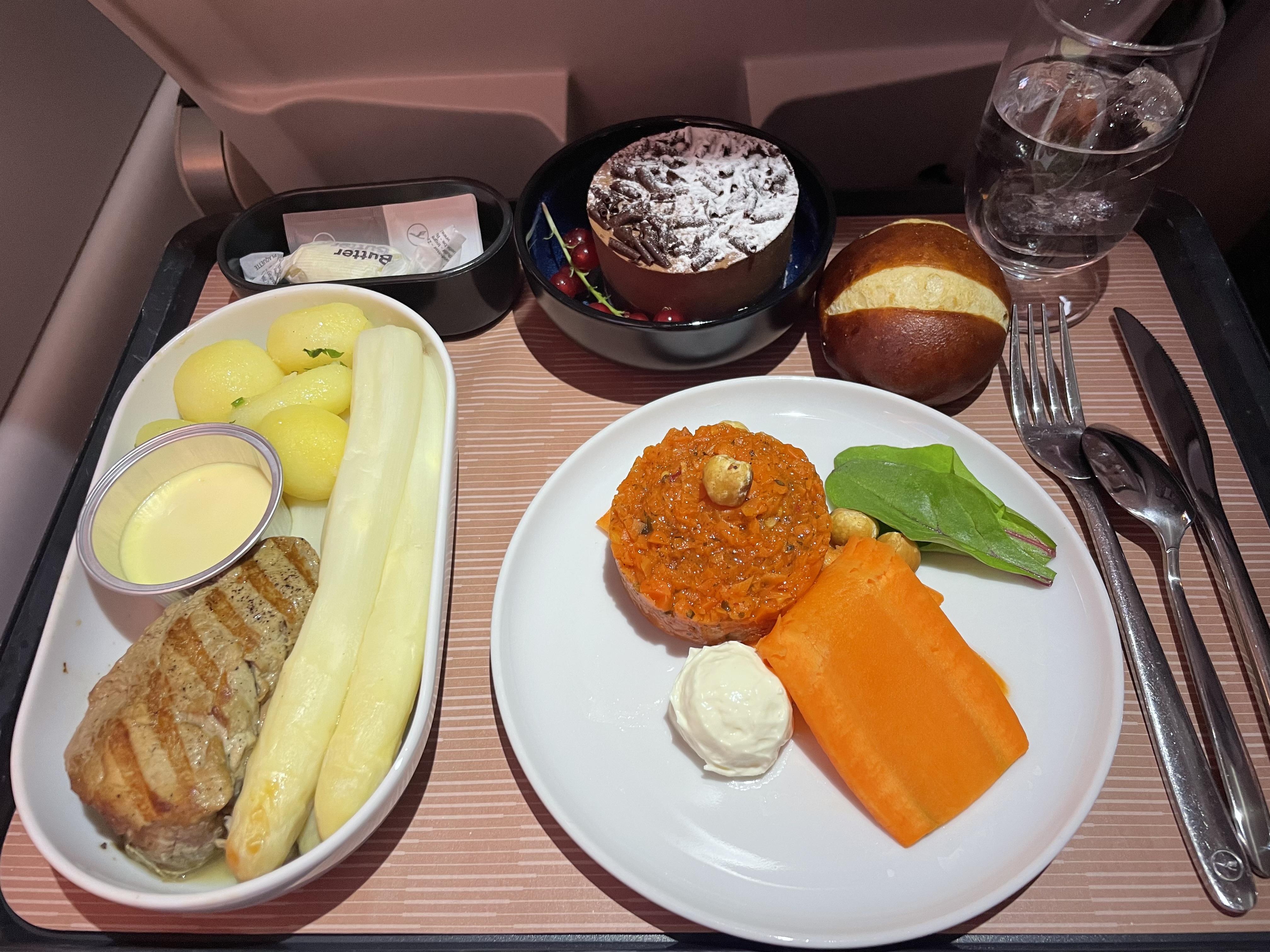 Freut mich, wenn es mundet. Für die Dauer des Fluges sieht es wirklich gut aus, wenngleich man quasi den LH-Controller neben dem Caterer vor Augen hat, dass das Gesamtpaket nicht mehr als 2,99€ Zutaten kosten darf.