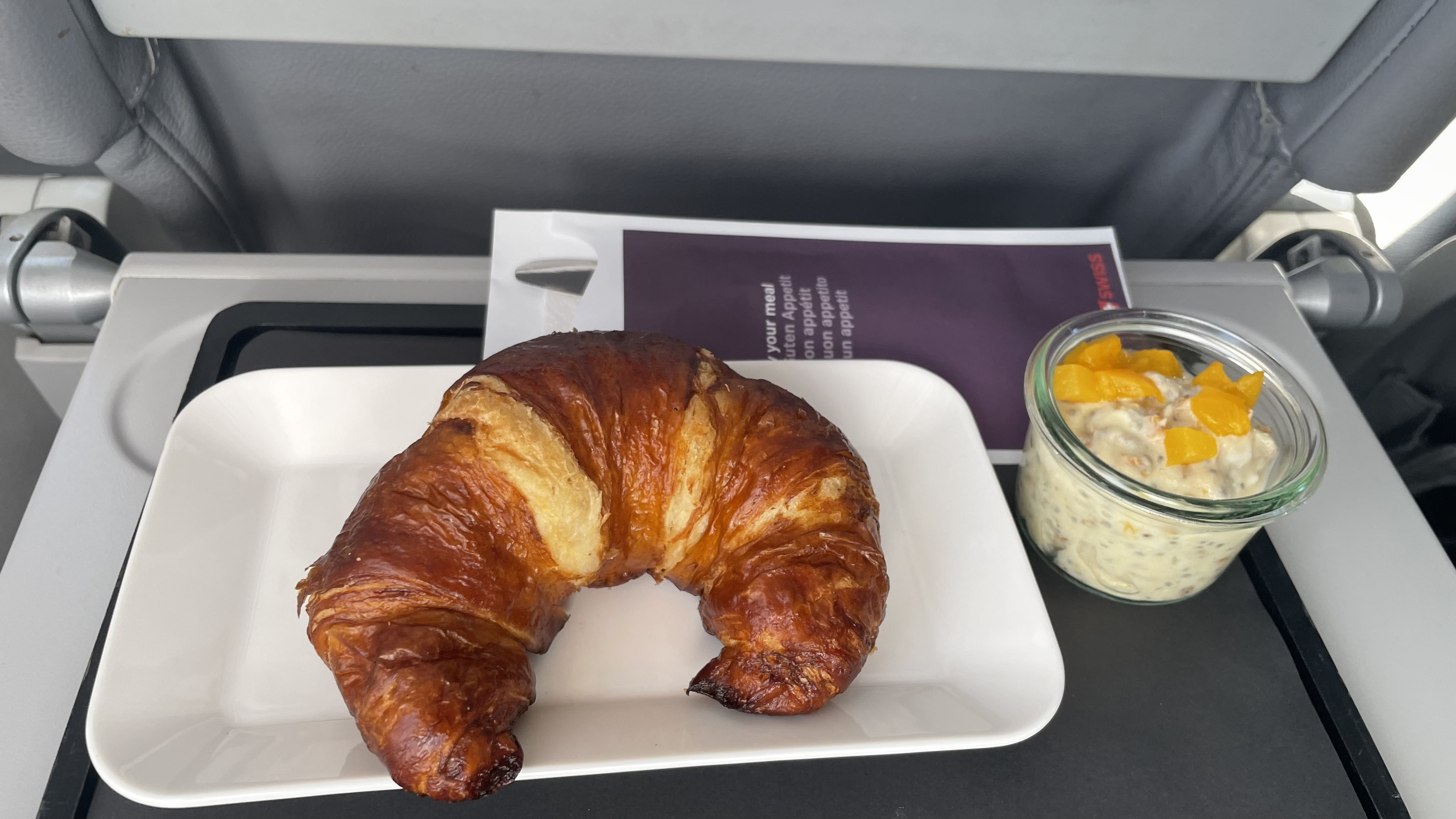 Laugen Gipfeli von FRA nach ZRH (Swiss operated by Helvetic). Marmelade und Butter separat bei Bedarf. Flugzeit 30min.