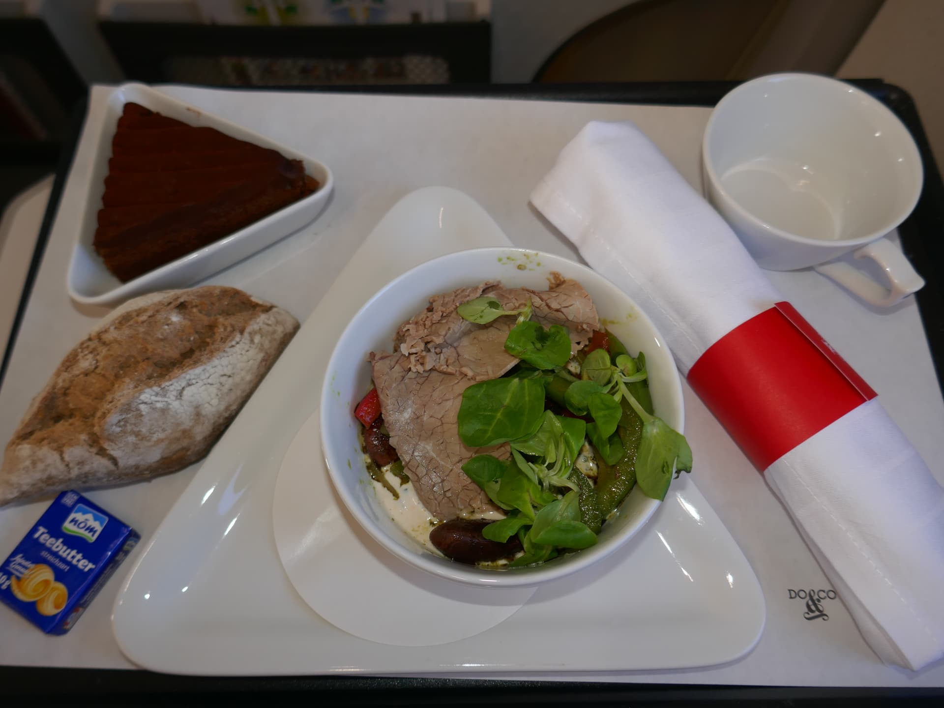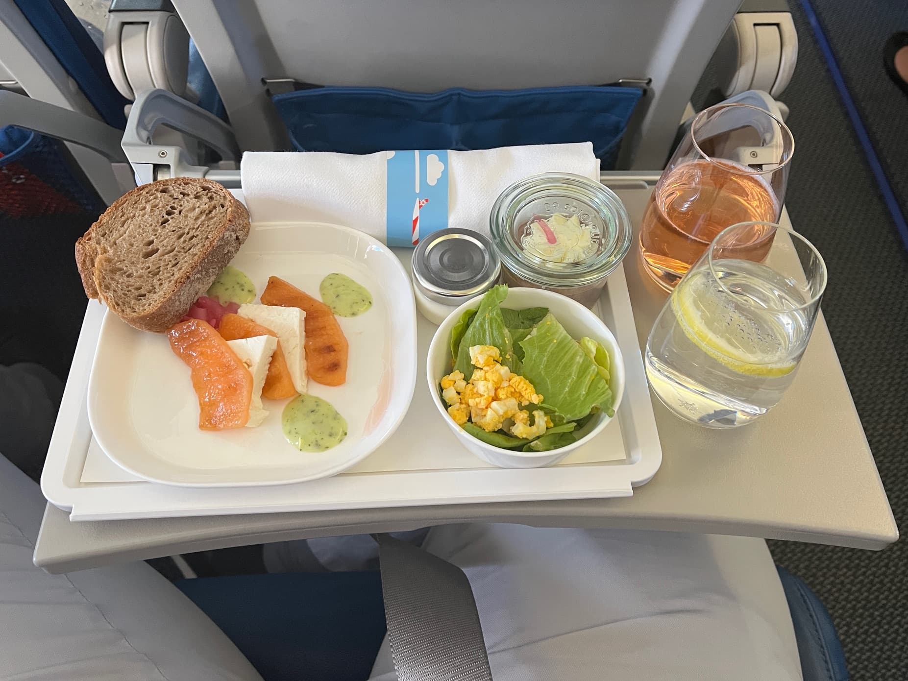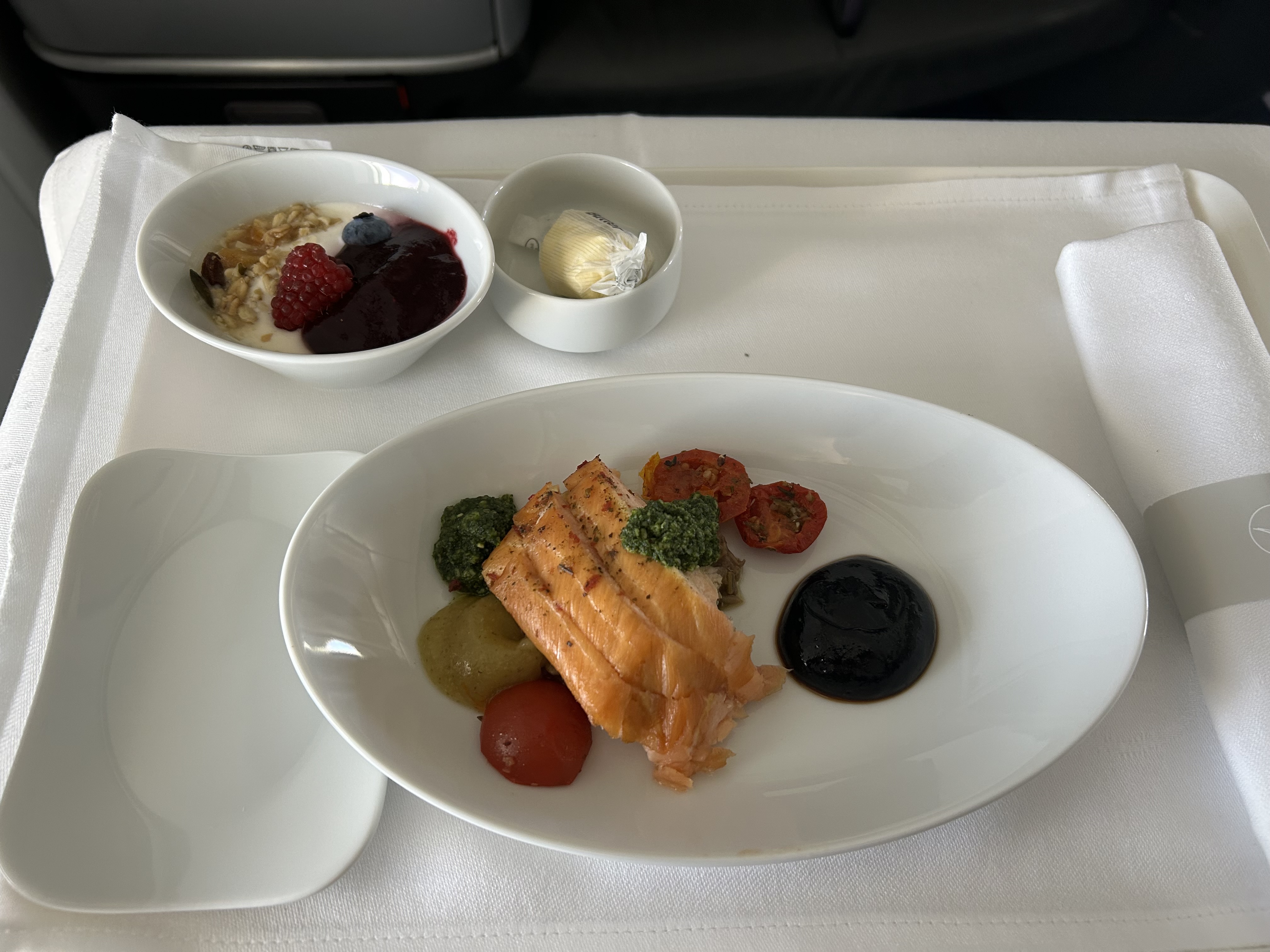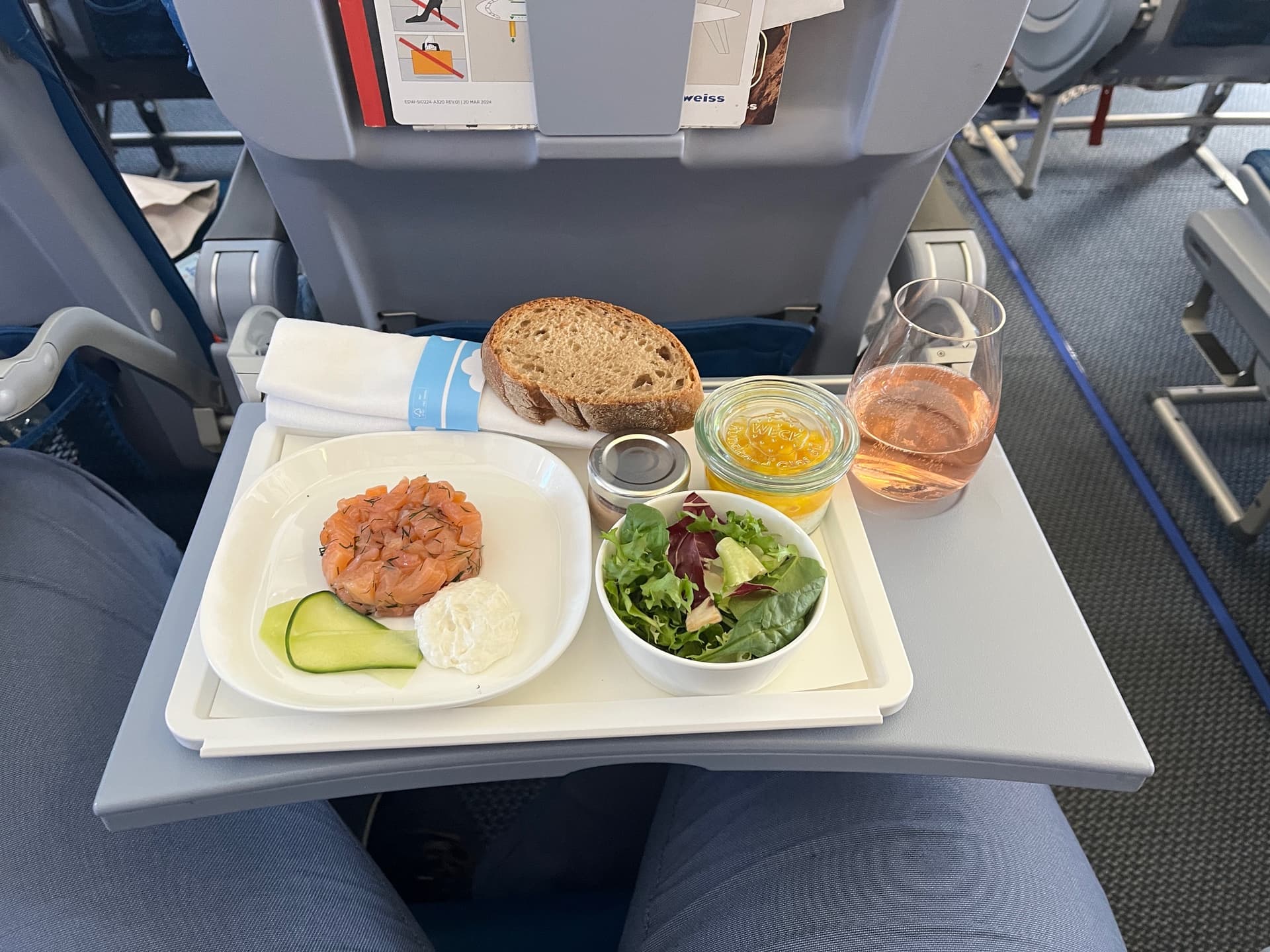Kurz vor der Landung gabs noch Lachs und Müsli
