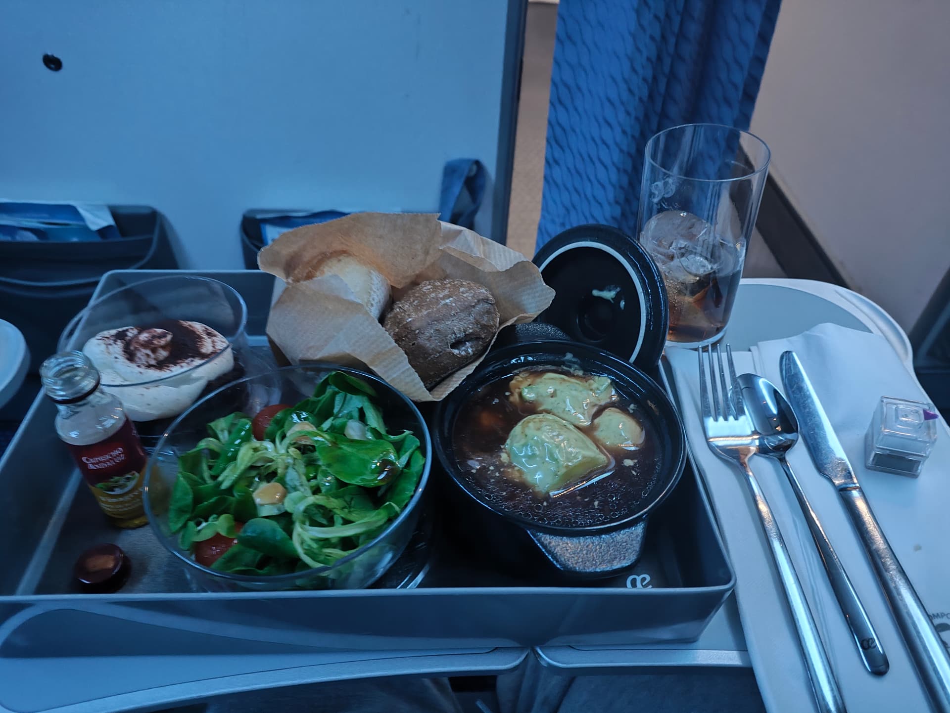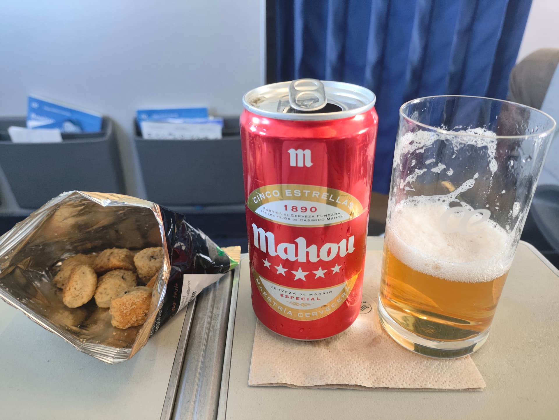 Bei +1 war das Bier so kalt, dass es innen zur Hälfte gefroren war und ordentlich Druck auf der Dose hatte, so dass es letztlich überall landete, nur nicht im Gaumen. Ich hatte dafür ein kaputtes Glas bekommen. Crew aber nach dem schwachen Start sehr freundlich und bemüht.