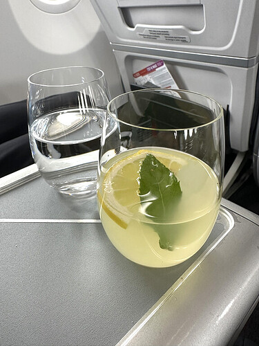 Für die erste Getränkerunde in der Luft entschied sich mein Mann dann für den Lufthansa Signature Drink „Avionik“ – der schmeckt uns echt gut.