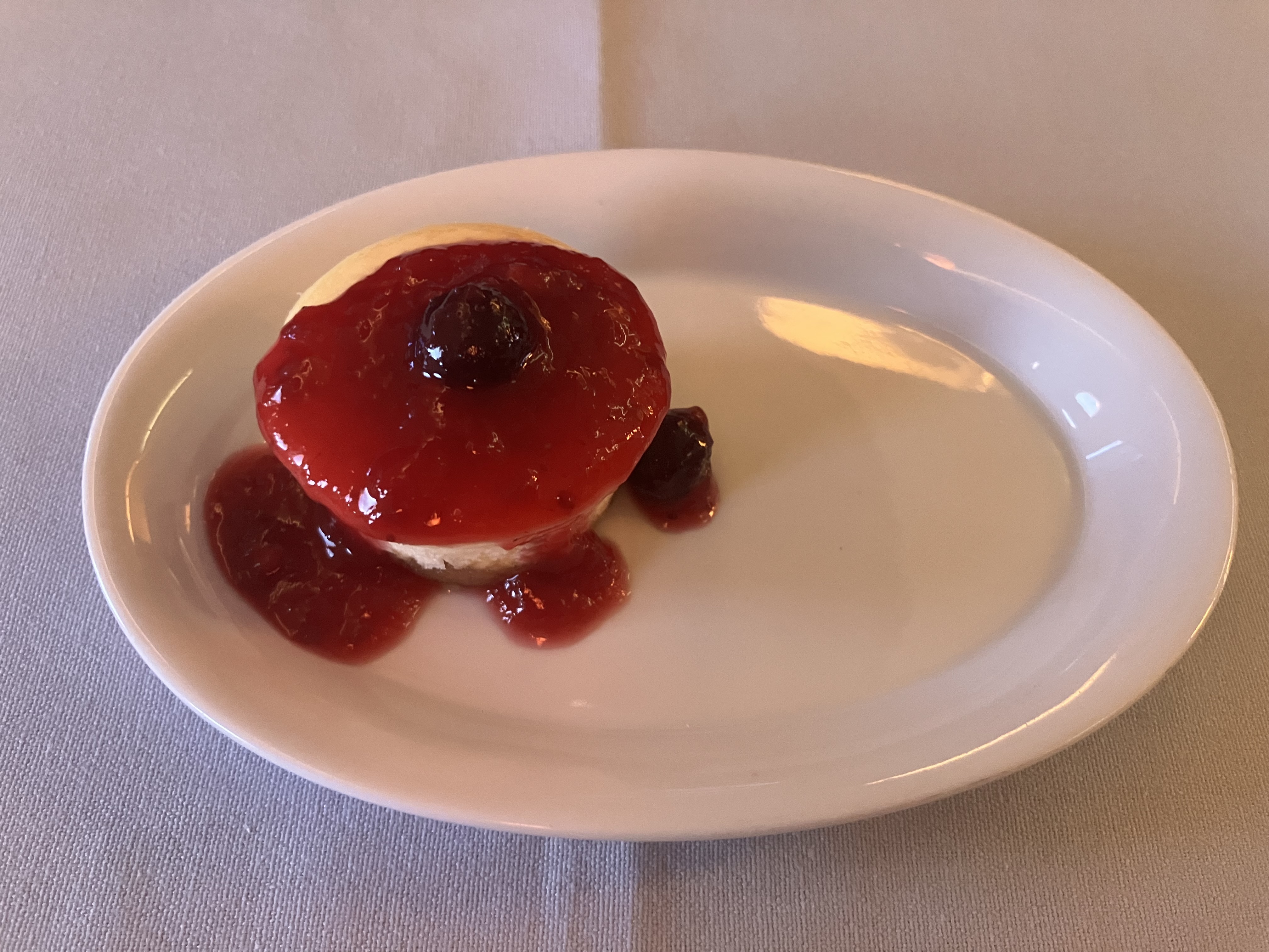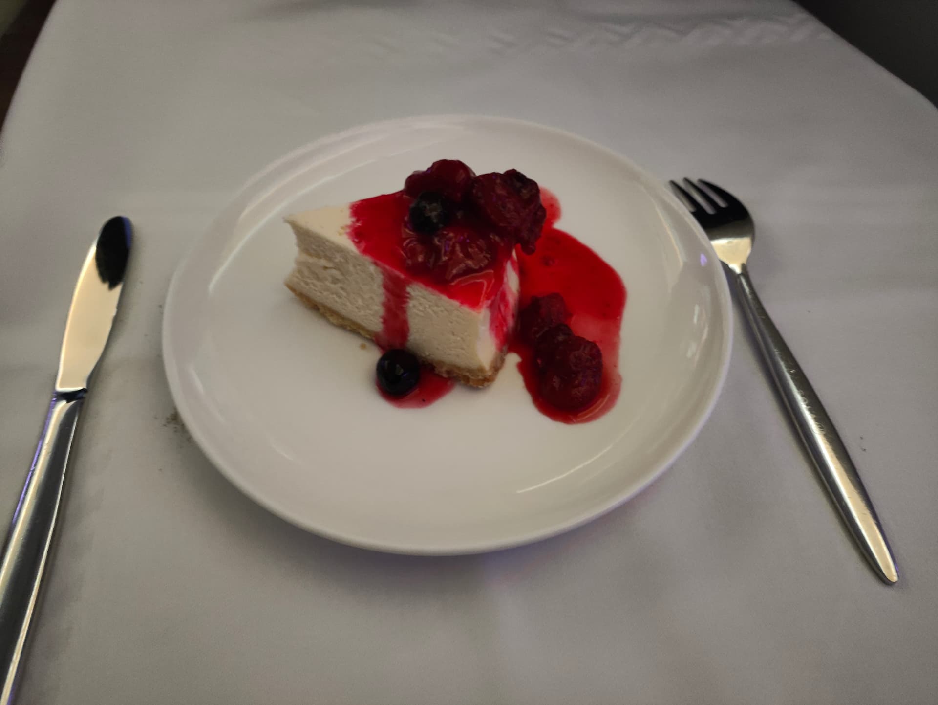Dessert: Vanilla Cheesecake - Ironie war, ich hatte eigentlich etwas anderes bestellt (Khanom tako tako with pandan), aber als der Cheesecake fälschlicherweise vor mich hingestellt wurde, hab ich ihn verputzt, ohne das zu realisieren