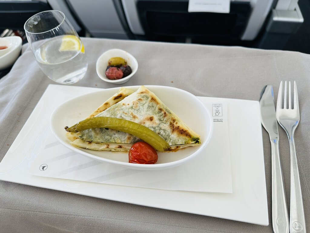 Als warme Option gab es eine Auswahl aus drei Gerichten. Ich entschied mich für das Omelette mit Truthahn und Käse. Für meinen Mann gab es Gözleme.