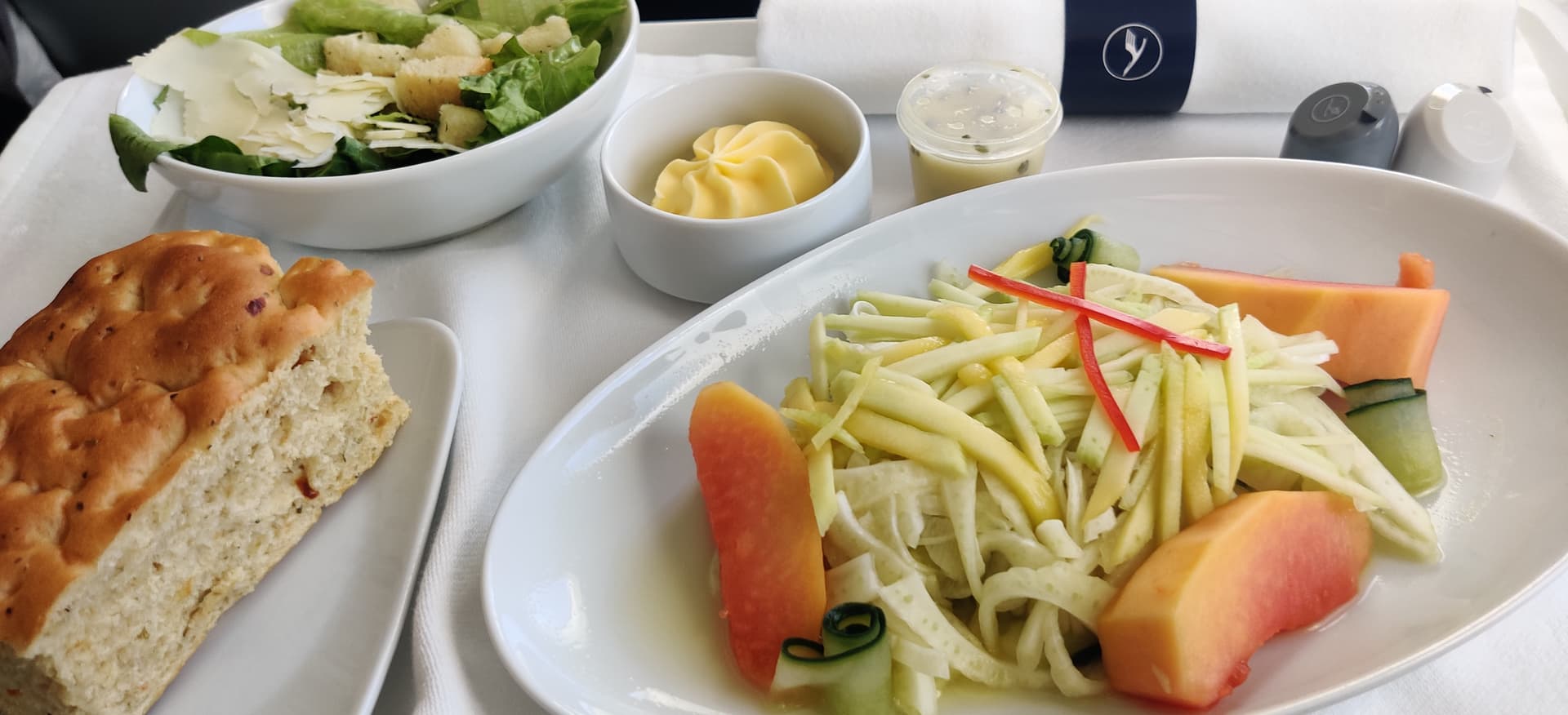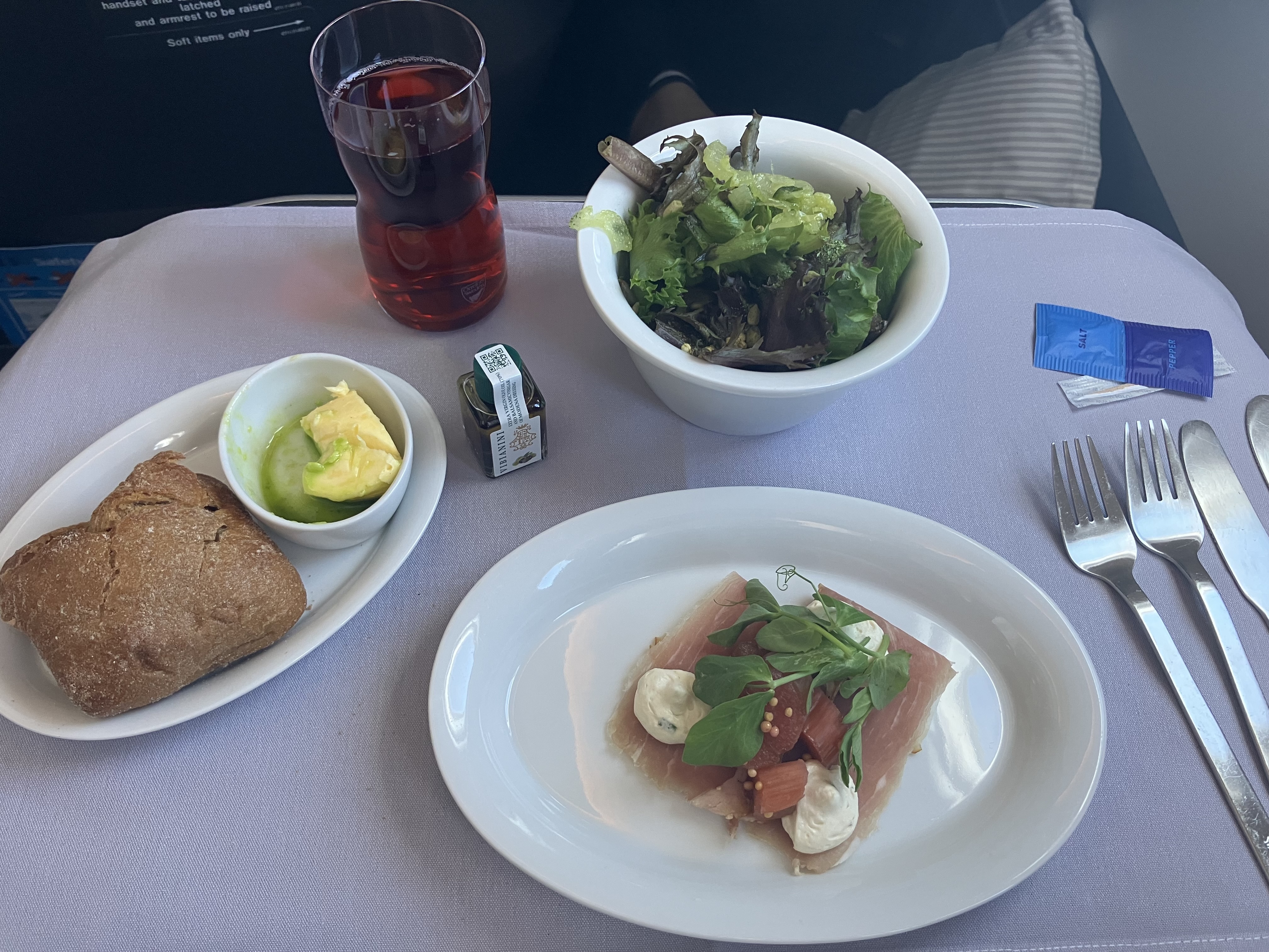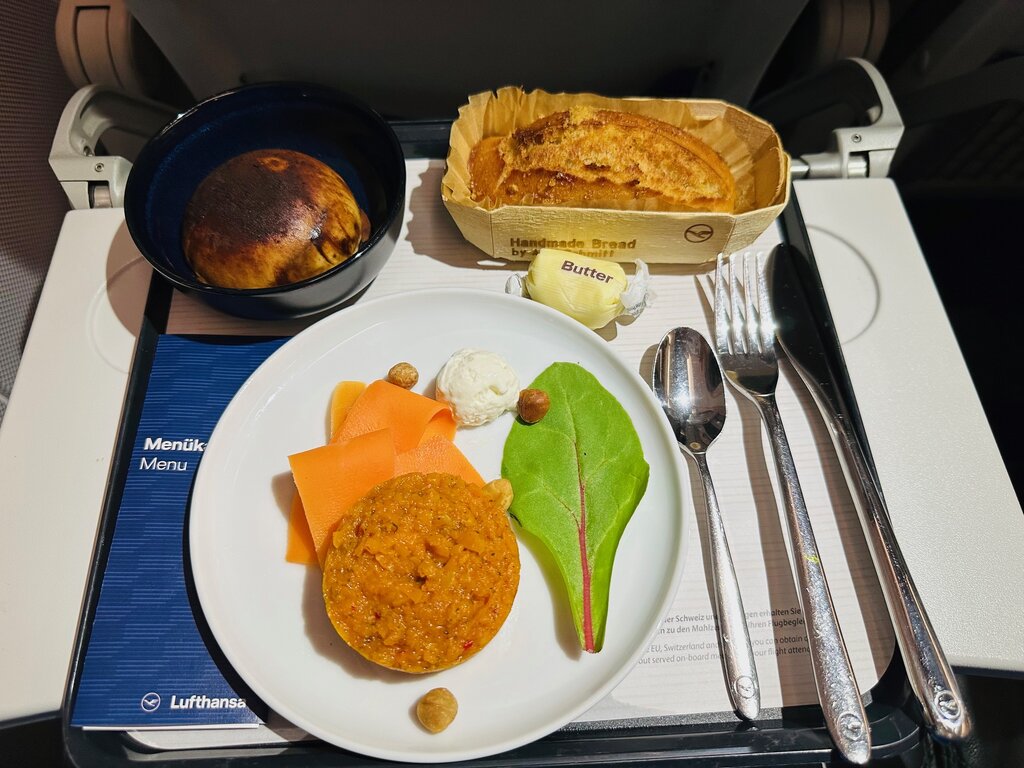 Auch hier war es meine erste Erfahrung auf Langstrecke. Ich war vom Platz zum schlafen angetan. Das Essen war gut, auch wenn dieser Snack zum Start und die Karotten-Ingwer-Suppe so gar nicht meins war!