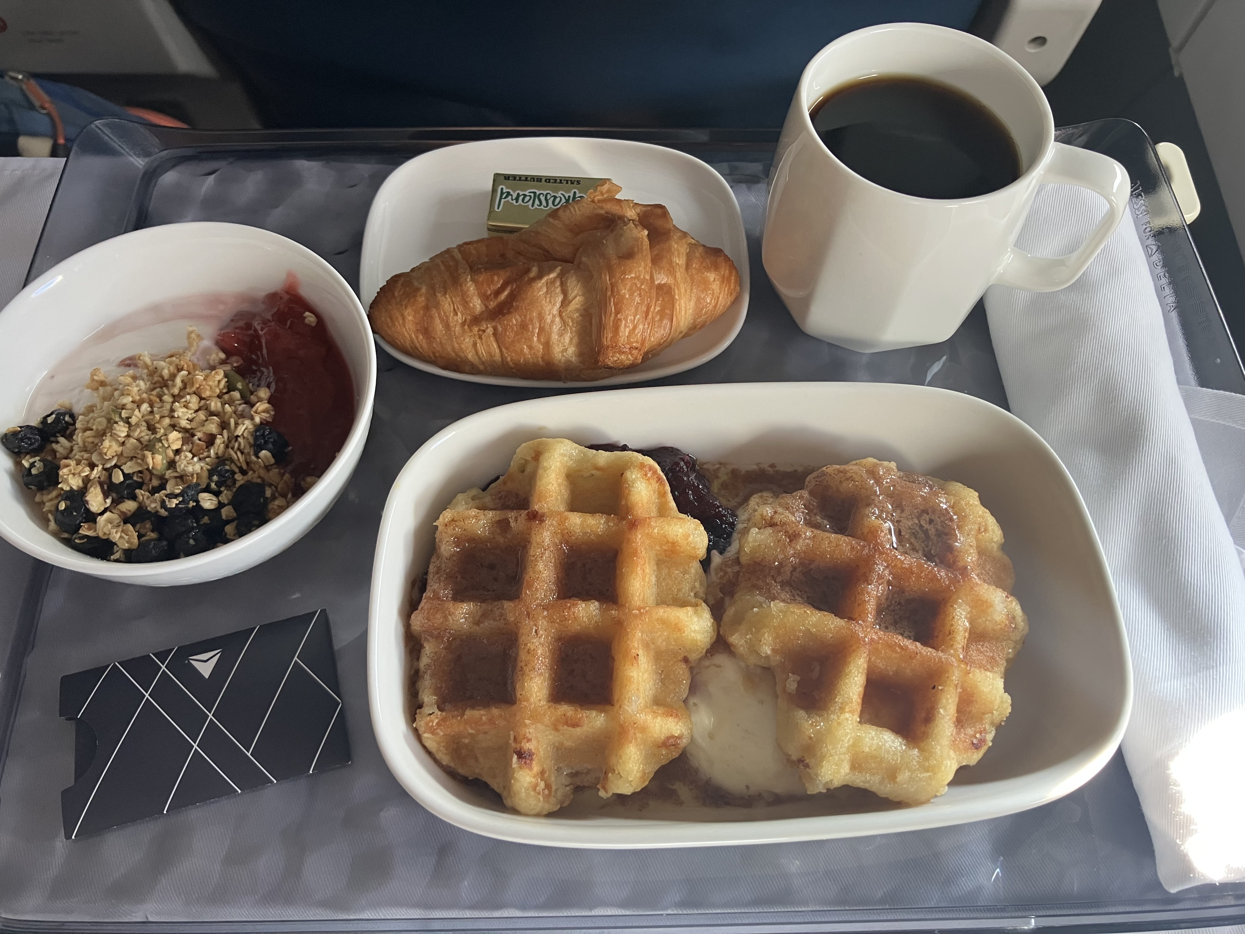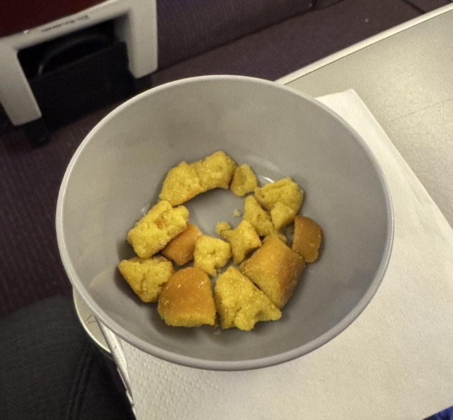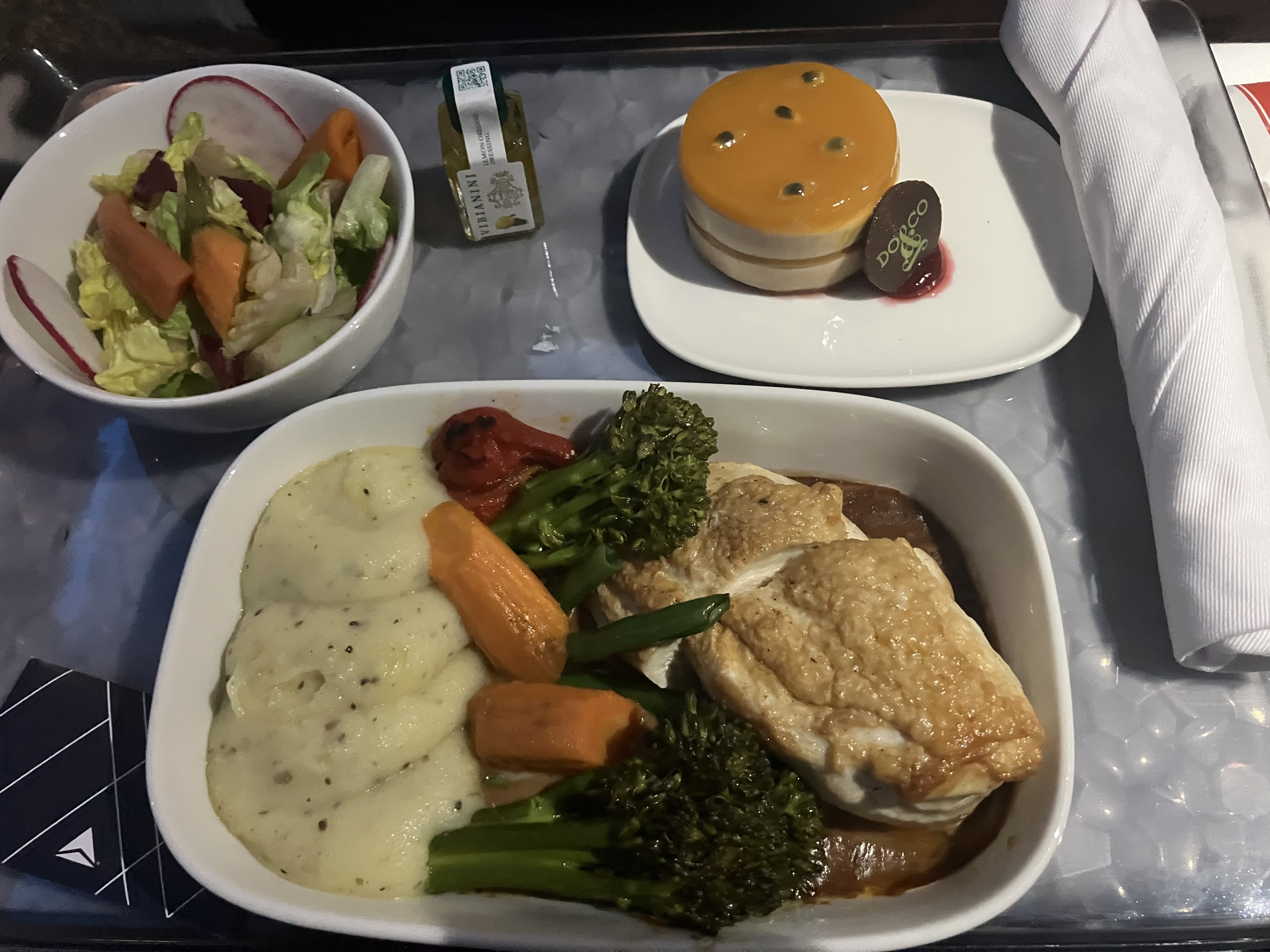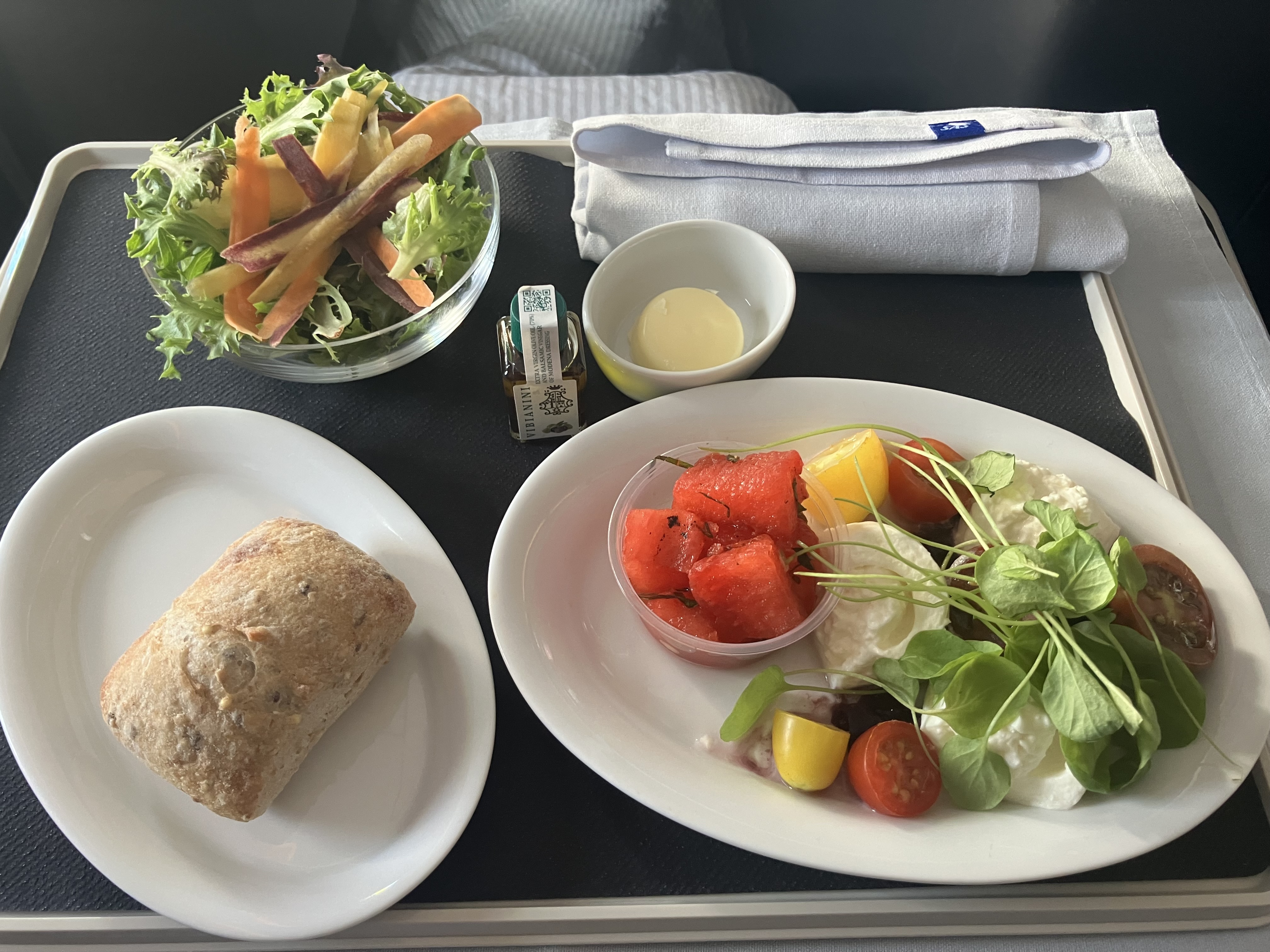Auch hier war es meine erste Erfahrung auf Langstrecke. Ich war vom Platz zum schlafen angetan. Das Essen war gut, auch wenn dieser Snack zum Start und die Karotten-Ingwer-Suppe so gar nicht meins war!