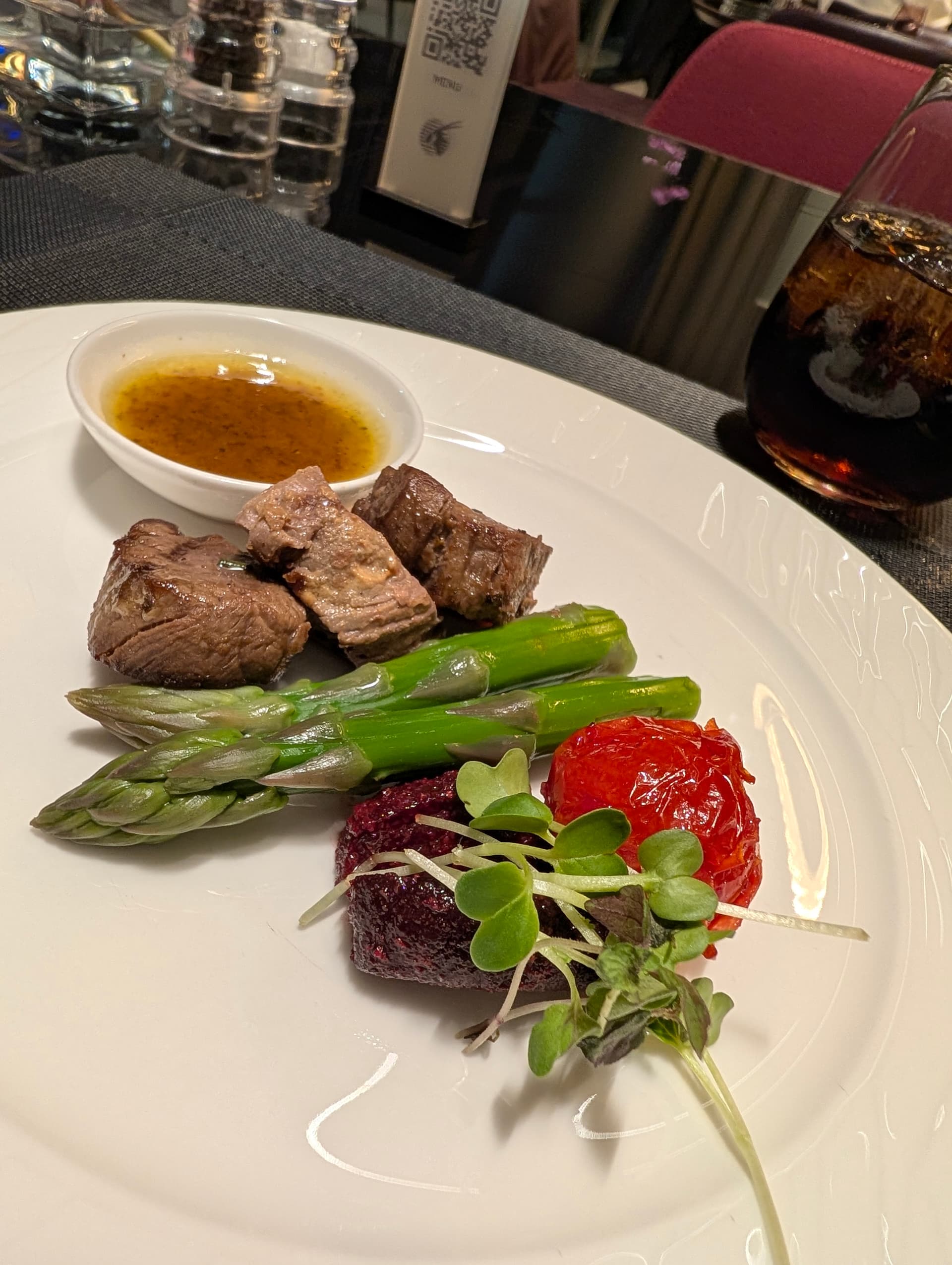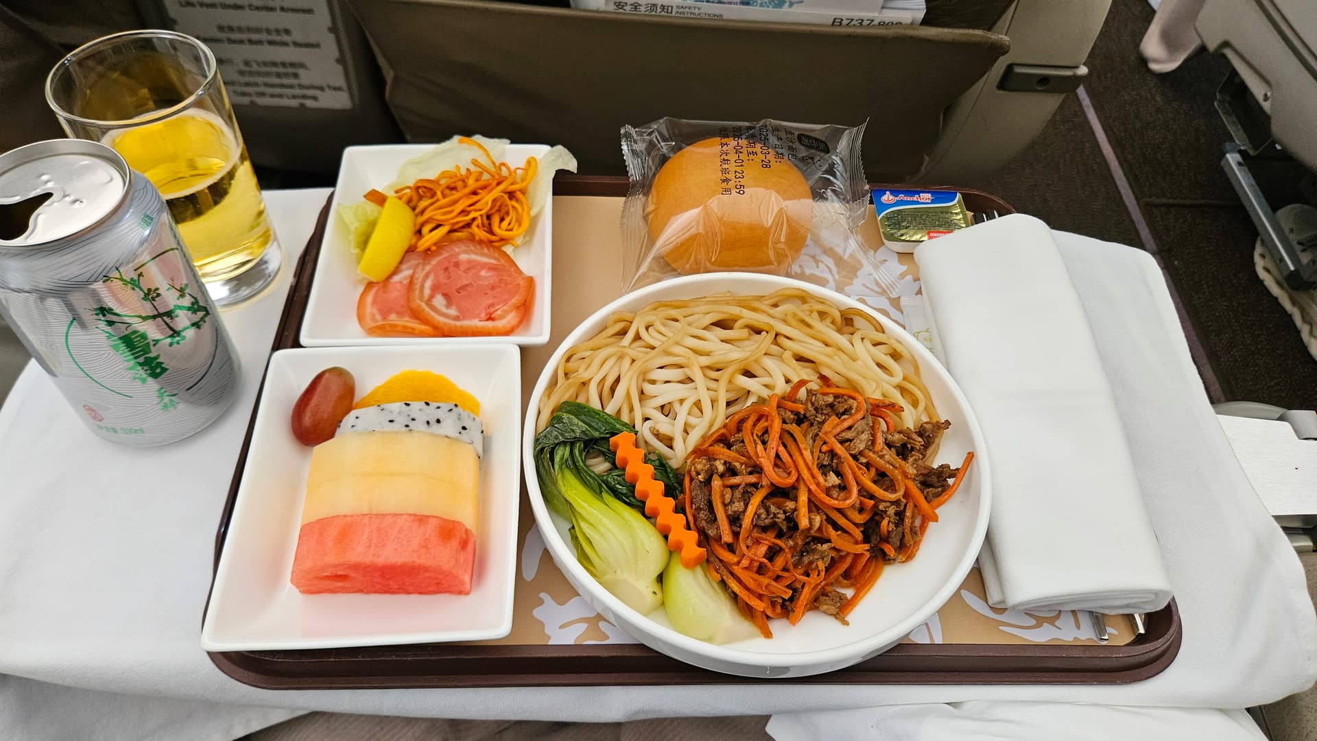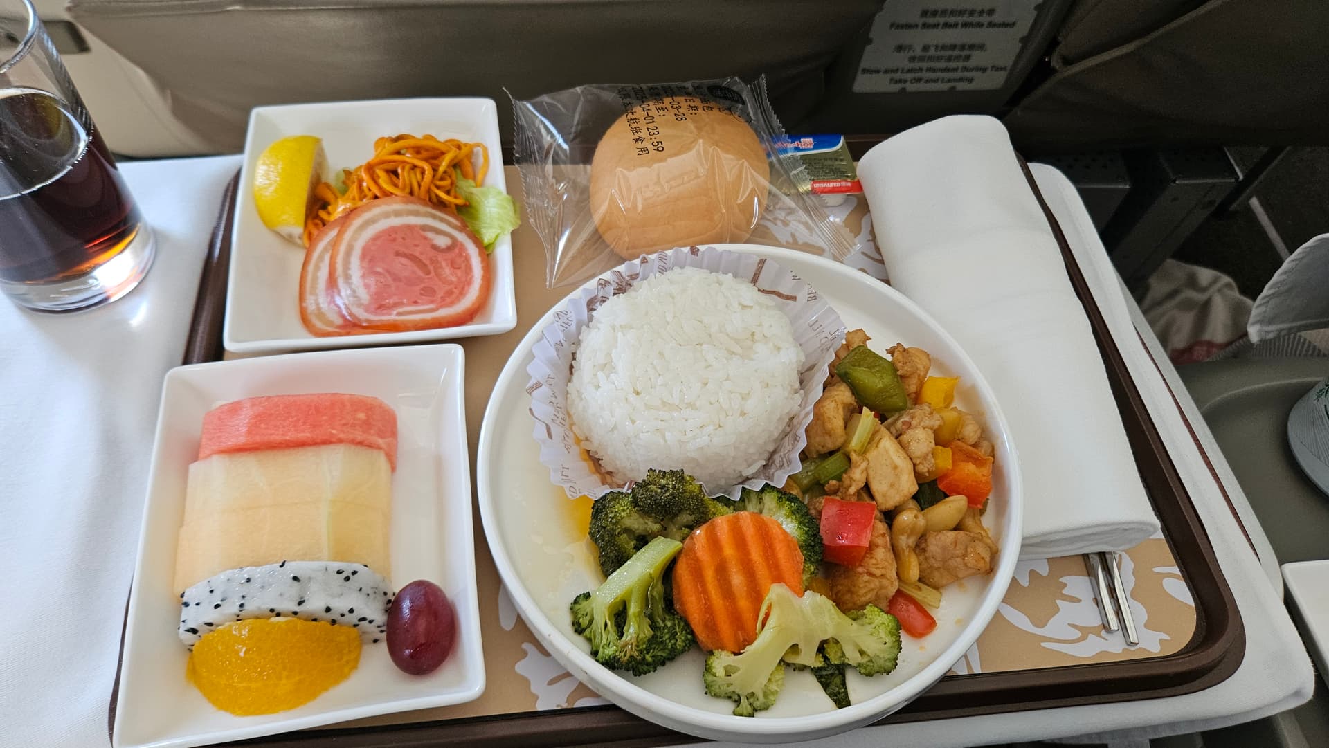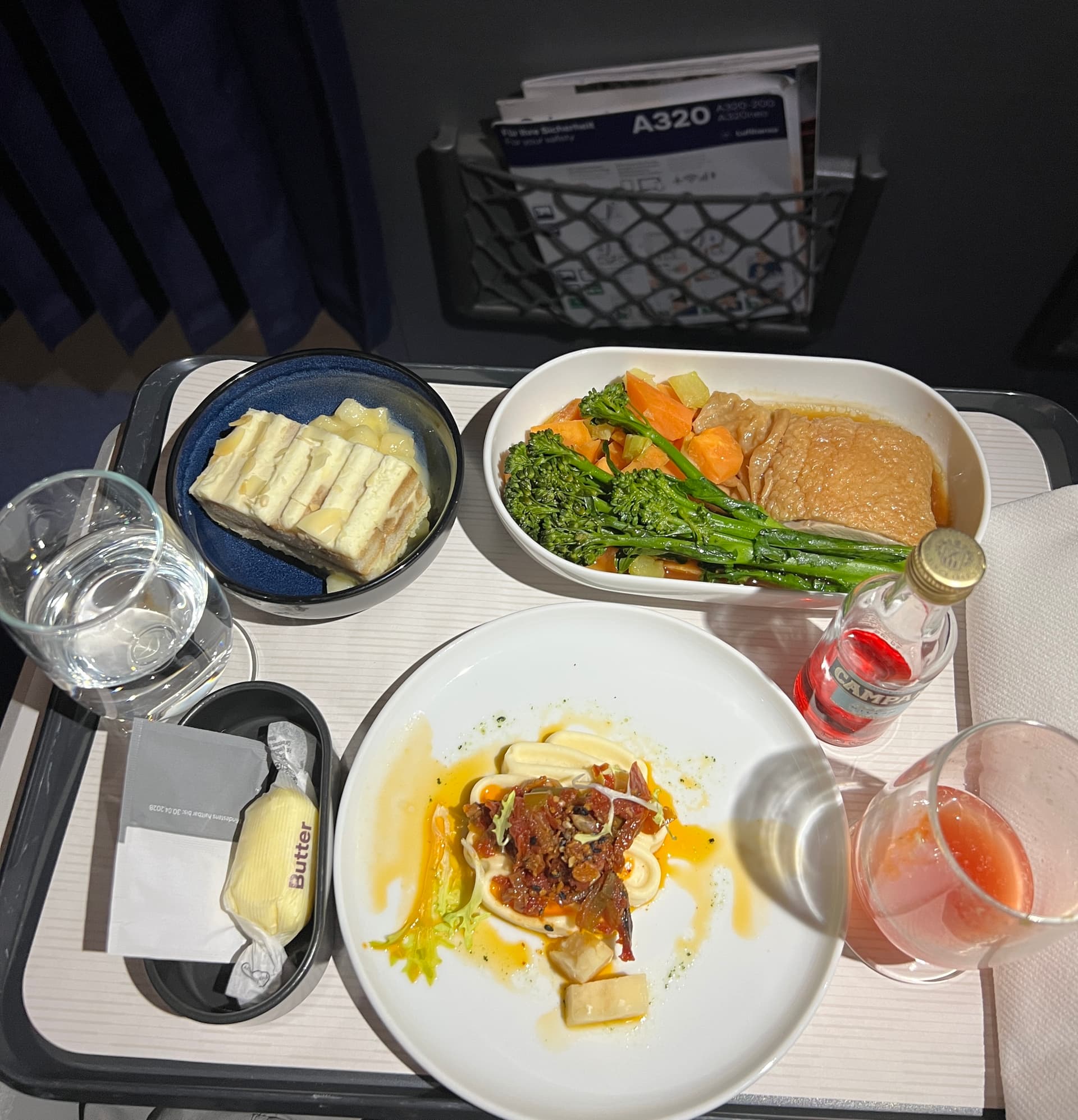 Doha nach Hongkong. Nachdem manches Essen aus war, gab es Hummer aus der First (die ich vom durchgehen etwas enttäuschend fand)