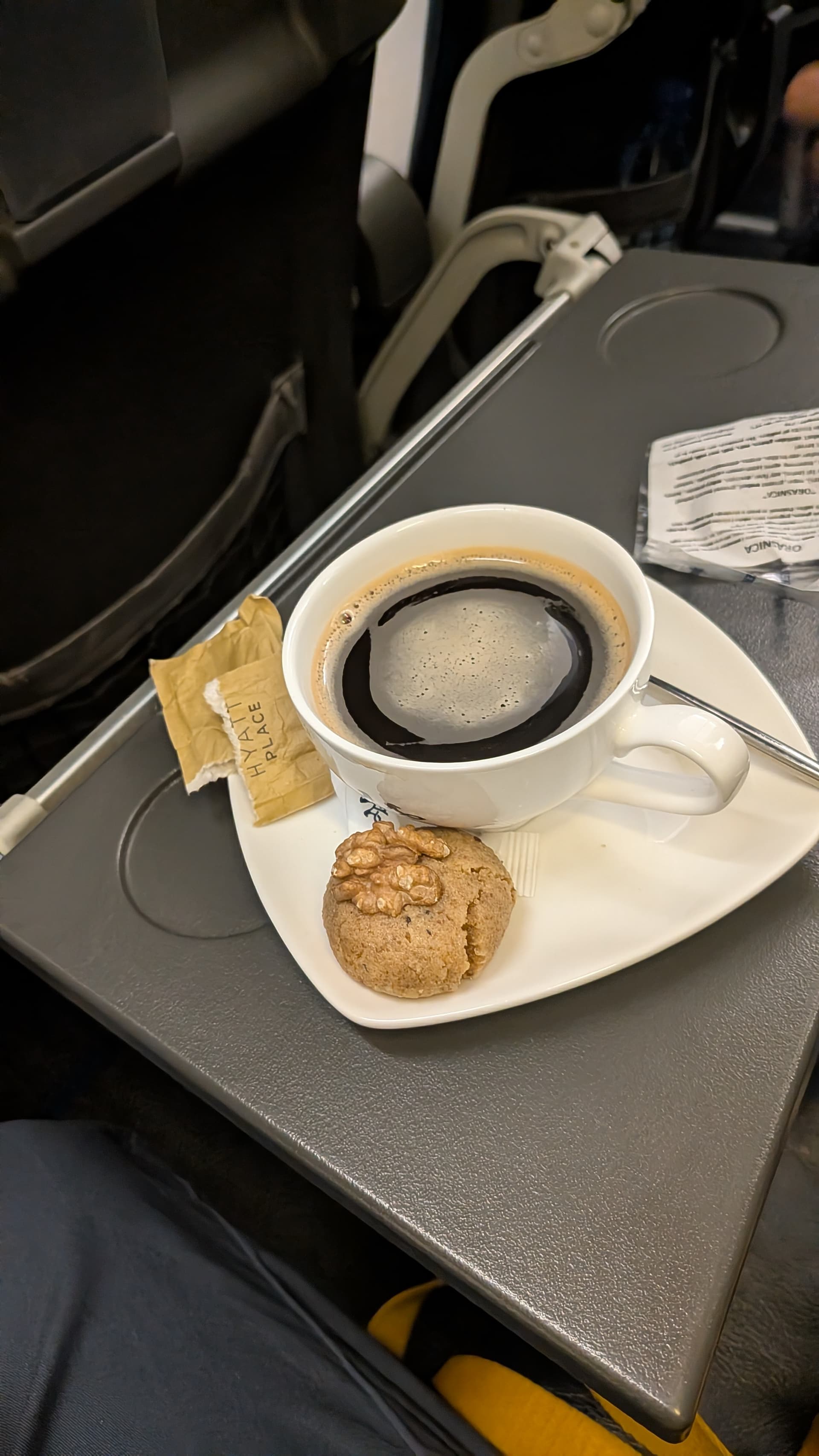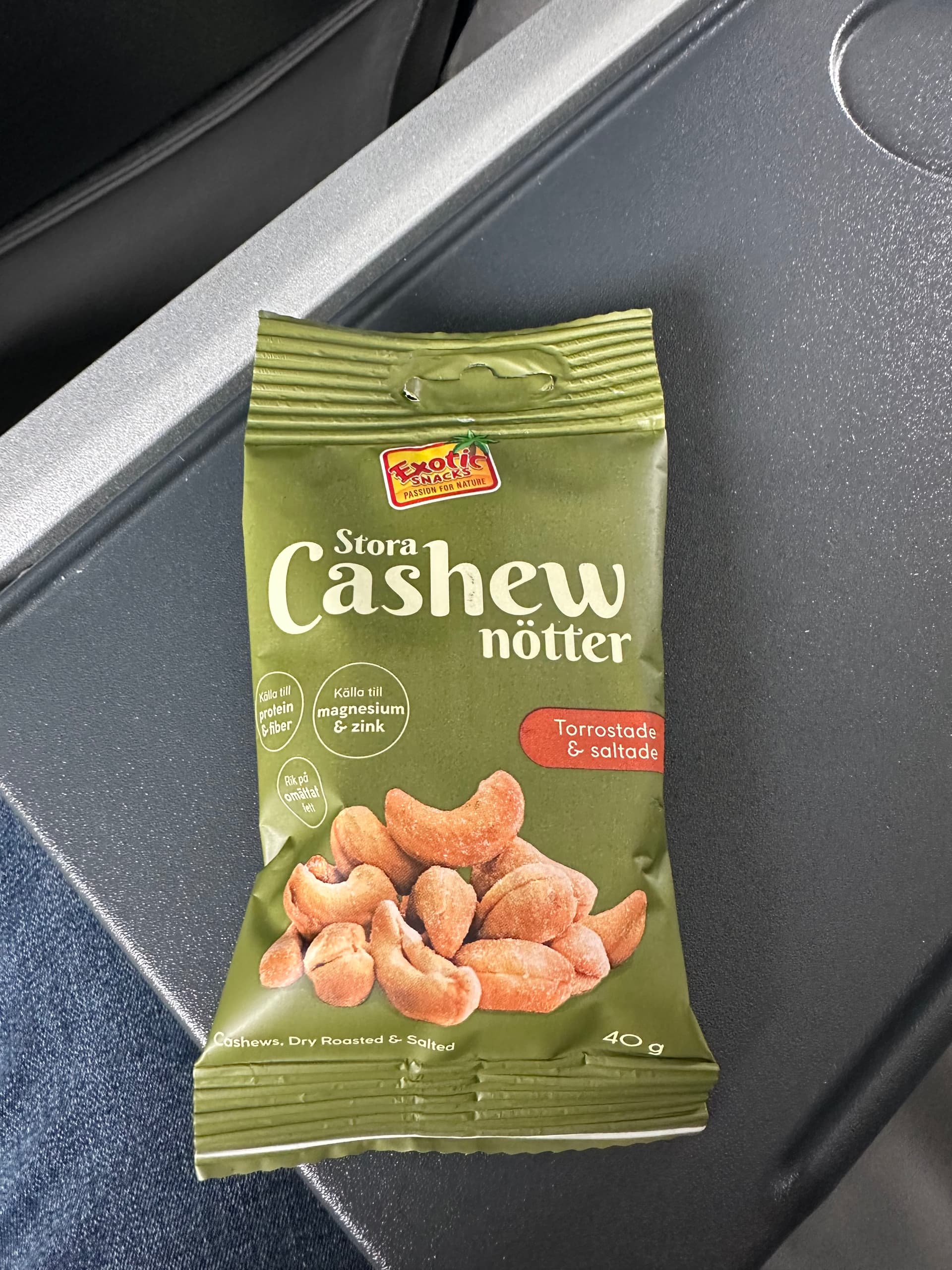 Das ist also die „neue Business Class“ bei SK? Nüsse und Kaffee aus‘m Pappbecher?