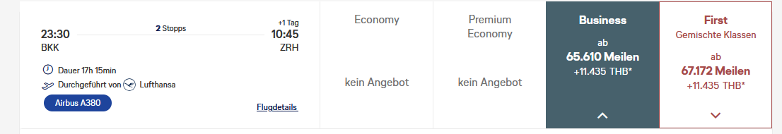 BKK-MUC-ZRH mit LH für 67k Meilen + ca 250€